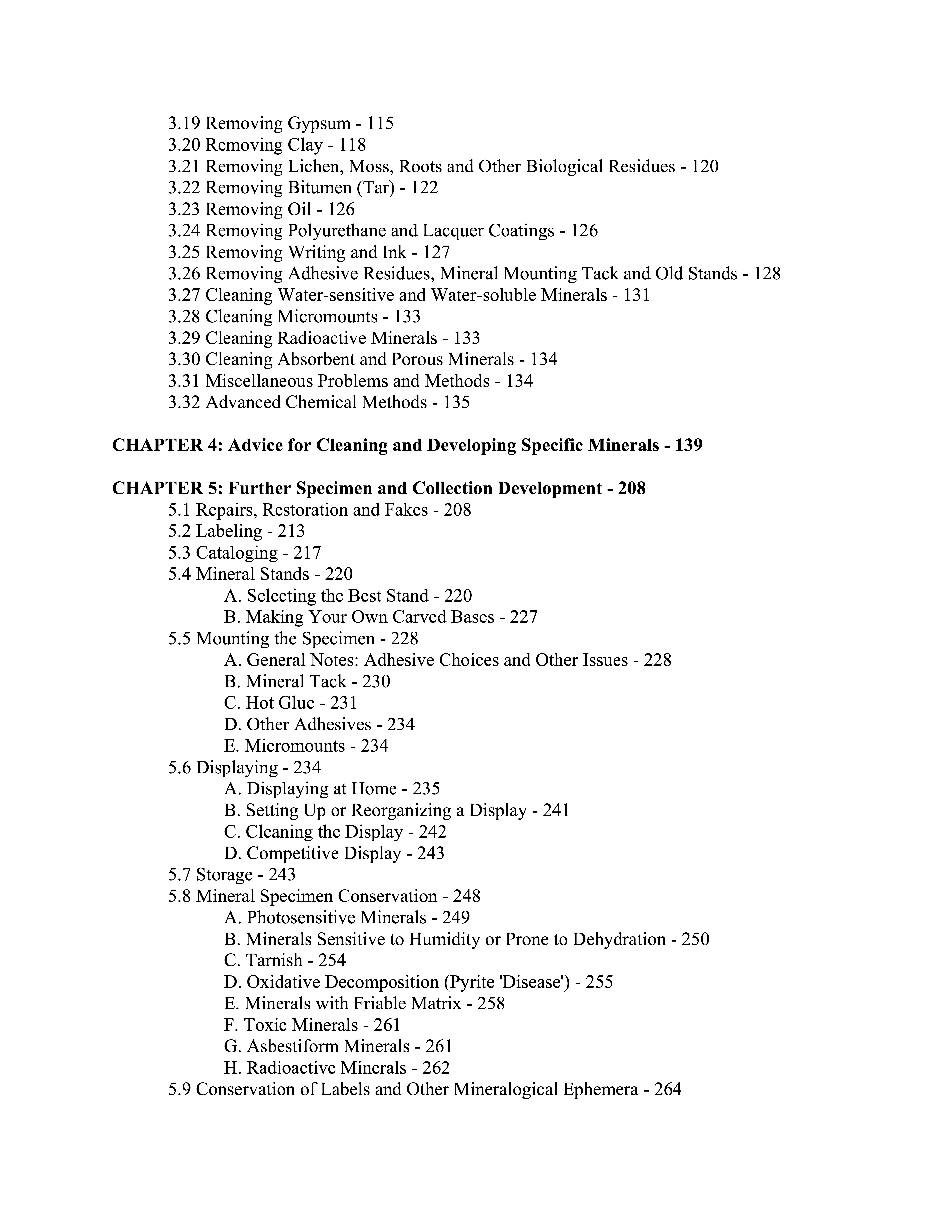 My new self-published book is now available: Mineral Specimen Cleaning and Development for the Amateur (339 pages). $42 (pdf; 30 MB) or $55 (print) plus applicable shipping and sales tax. Note: Images in the pdf version are better than in the  print version. To order send an email to steve@dragon-minerals.com. Sample pages below (click to enlarge).