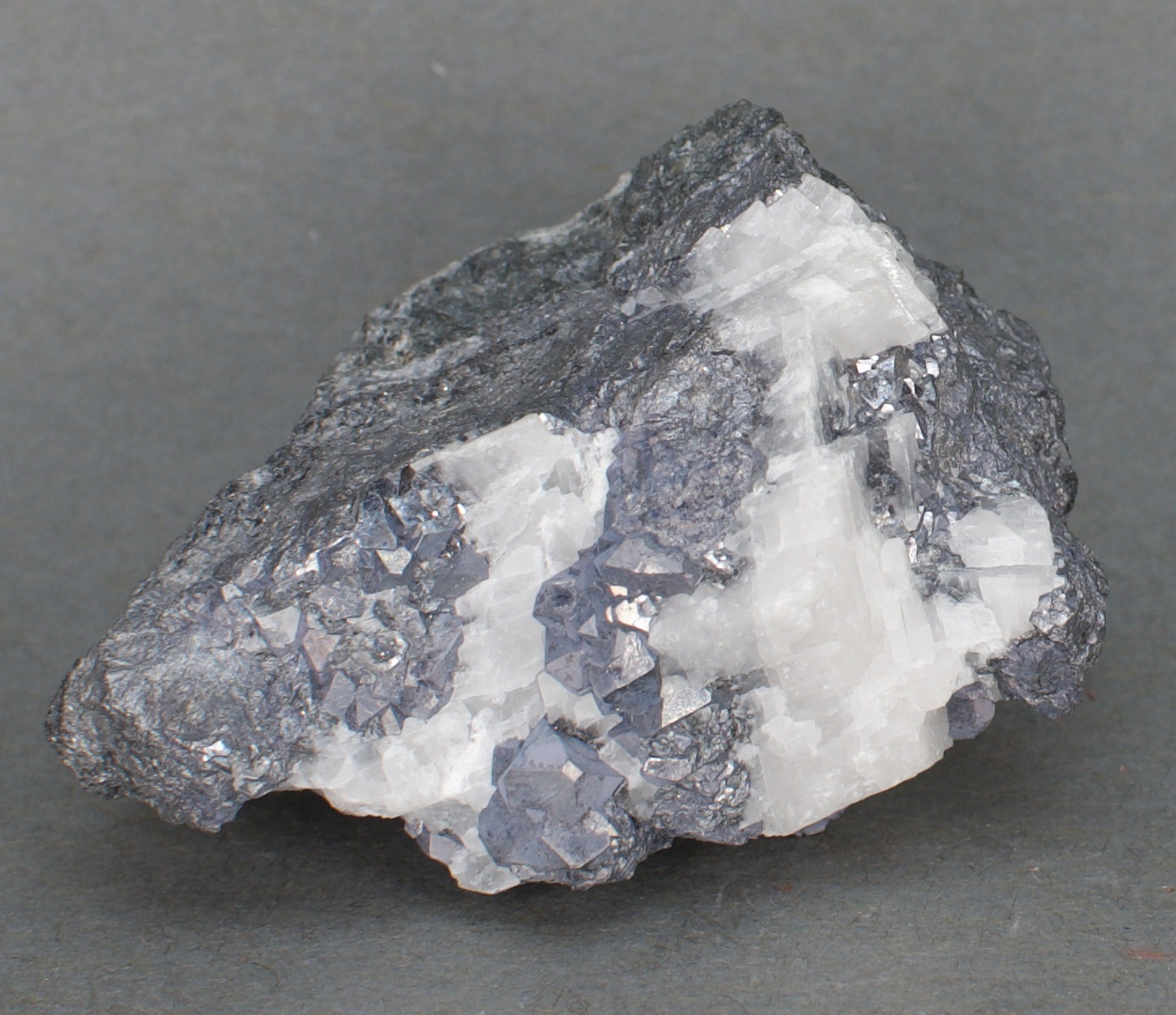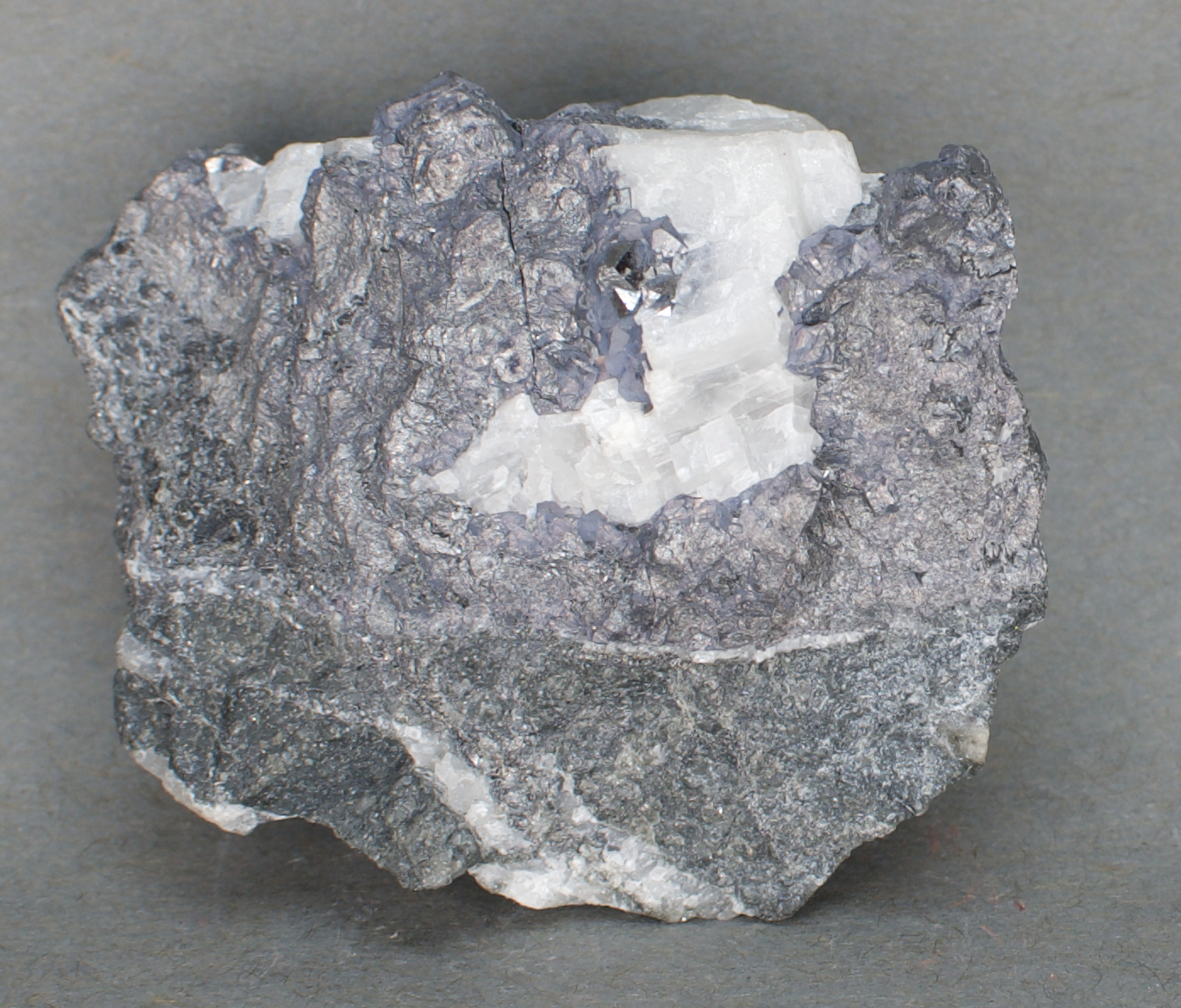 Partially enclosed in massive calcite. Unusual to see this