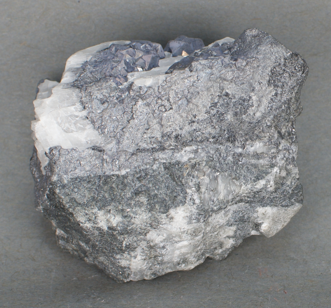 crystals to 5 mm rise from a massive skutterudite matrix.