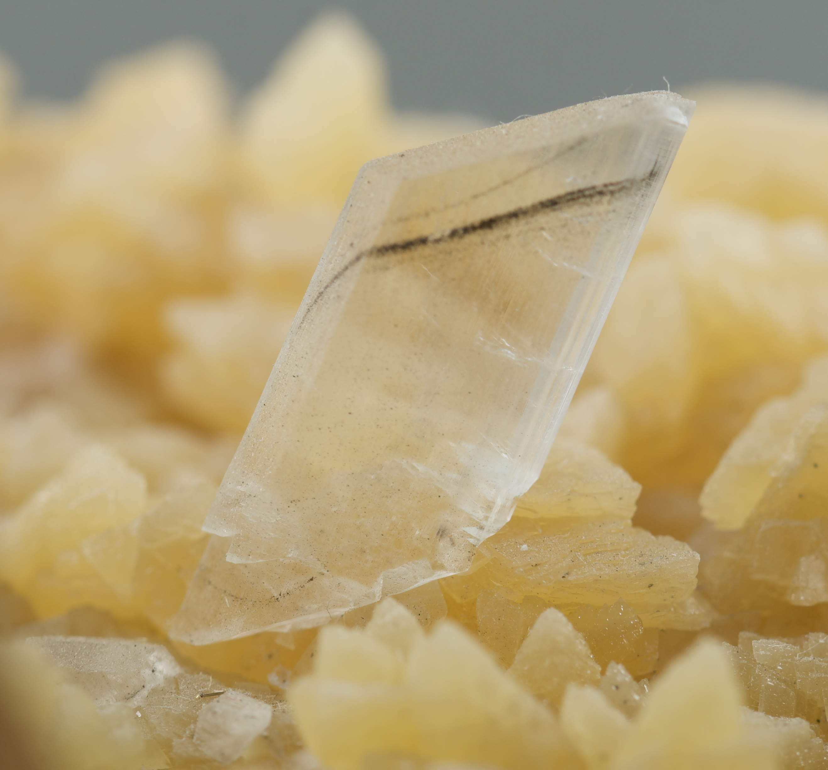 Calcite - $30 Elk Creek, Meade County, South Dakota Small cabinet - 6.7 x 4.9 x 3.6 cm 123 grams Fluorescent (LW) Specimen status: Available Send an email with specimen number to order An amber brown and transparent, 1.2 cm