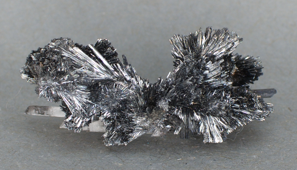 Selenite - $34 Cavnic, MaramureČ™ County, Romania Miniature - 4.4 x 2.6 x 1.8 cm 12 grams Specimen status: Reserved Send an email with specimen number to order Sprays of lustrous stibnite needles