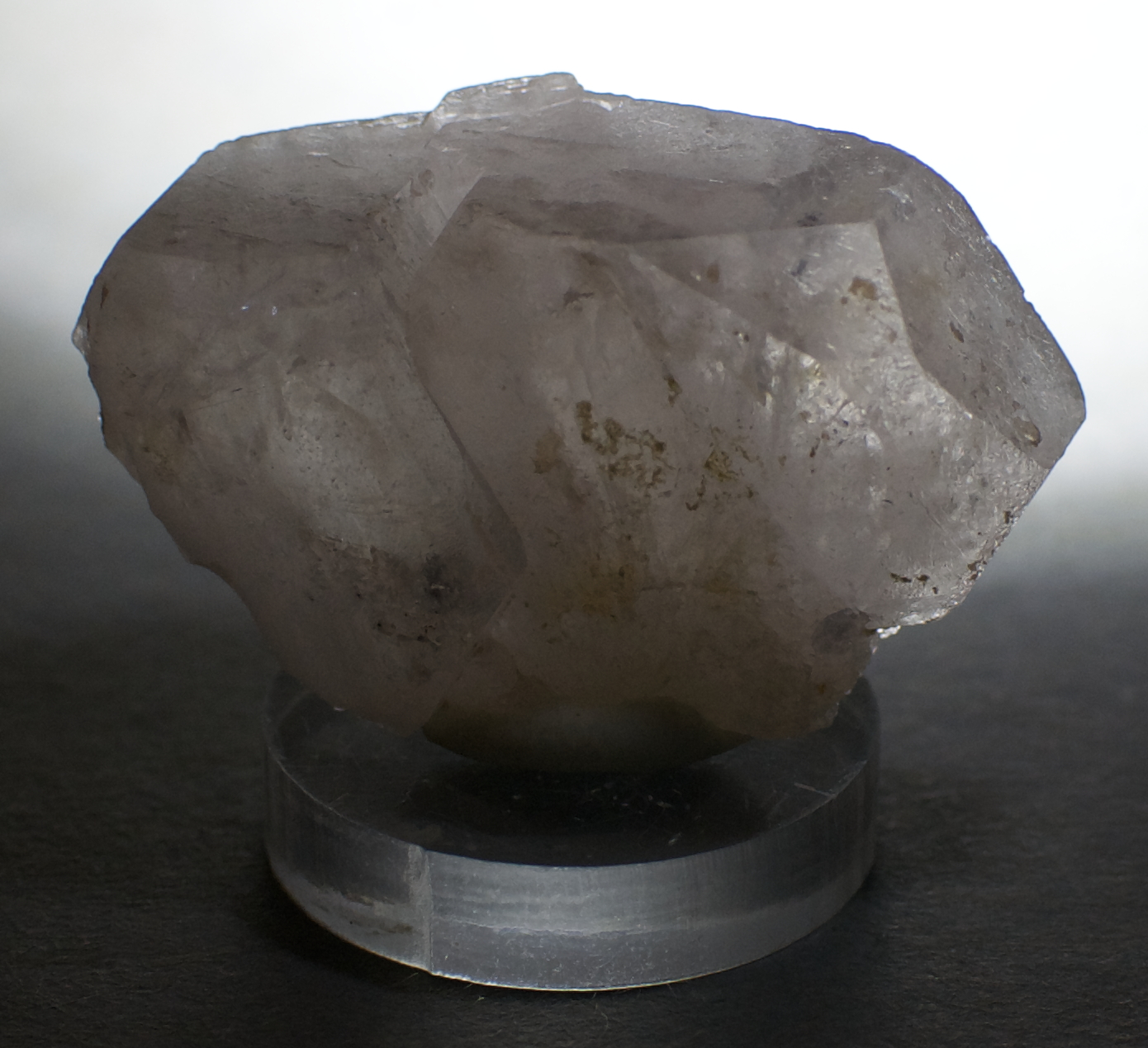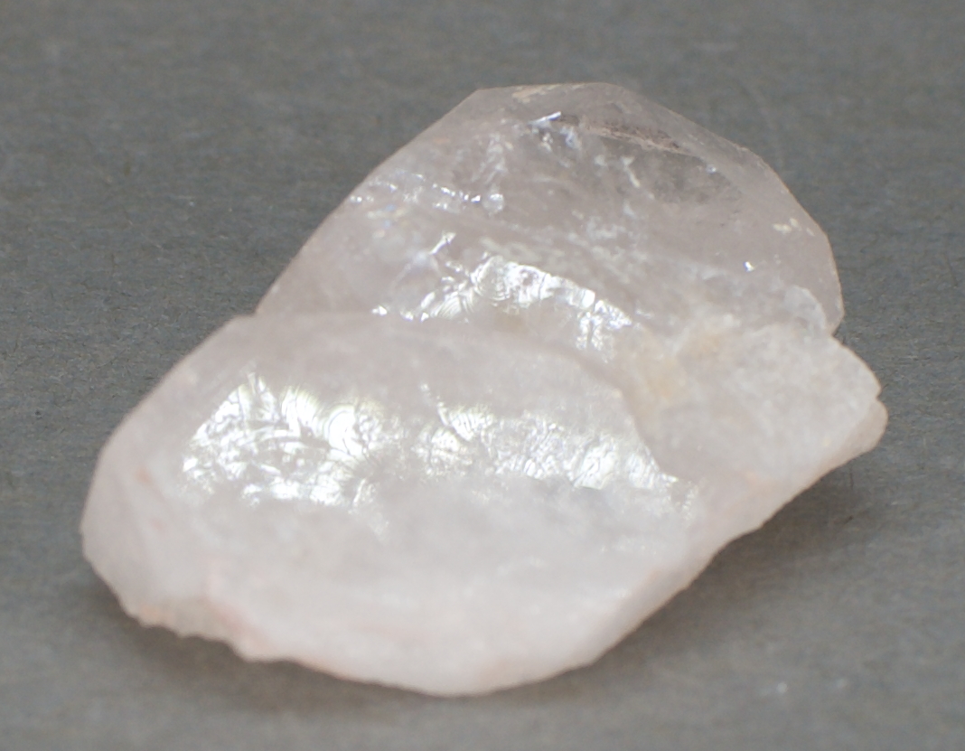 | 03839: Beryl variety Morganite - $12 Oceanview Mine, Chief Mountain, Pala Mining District, San Diego County, California Miniature - 4.0 x 2.4 x 1.3 cm 17 grams Specimen status: Reserved Send an email with specimen number to order A translucent beryl crystal with