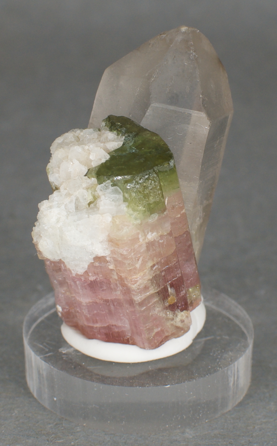 a green cap. Next to the tourmaline is a 3.0 cm, highly