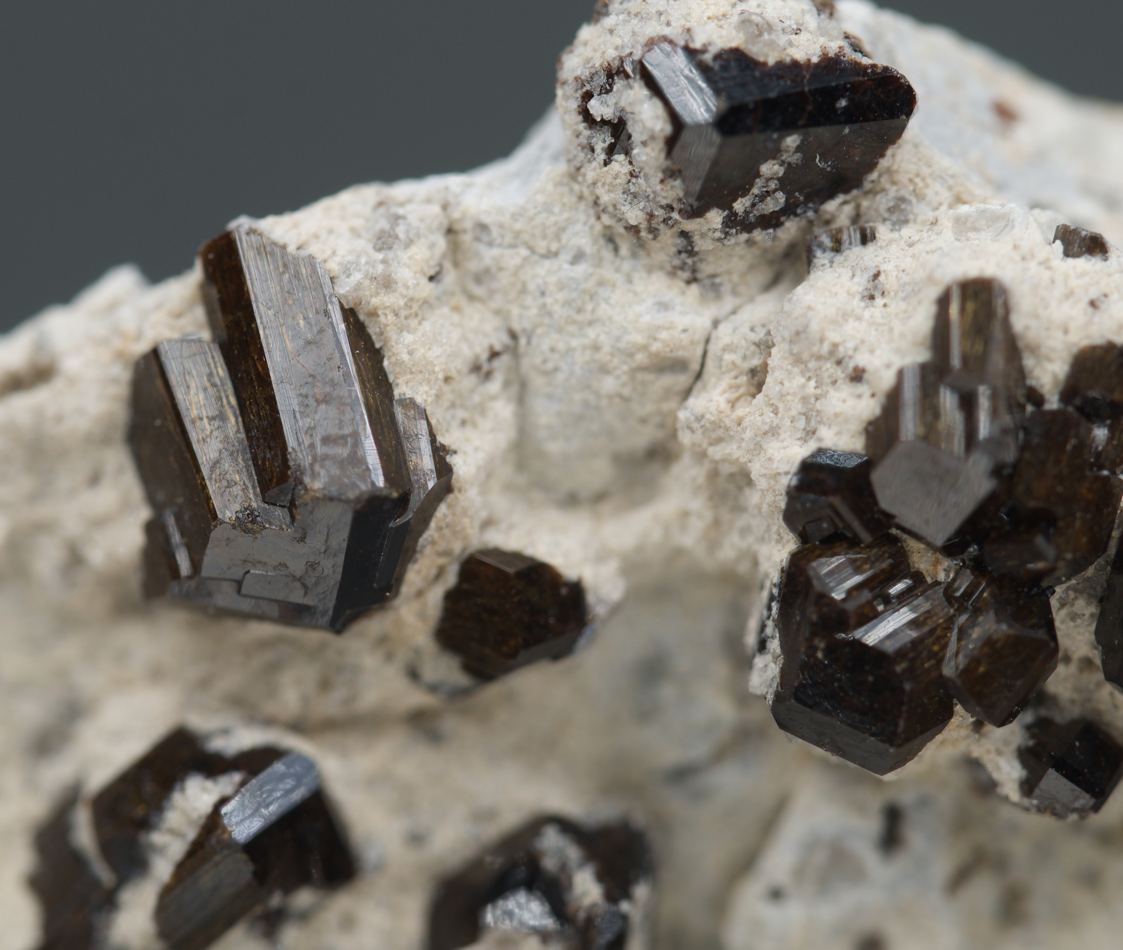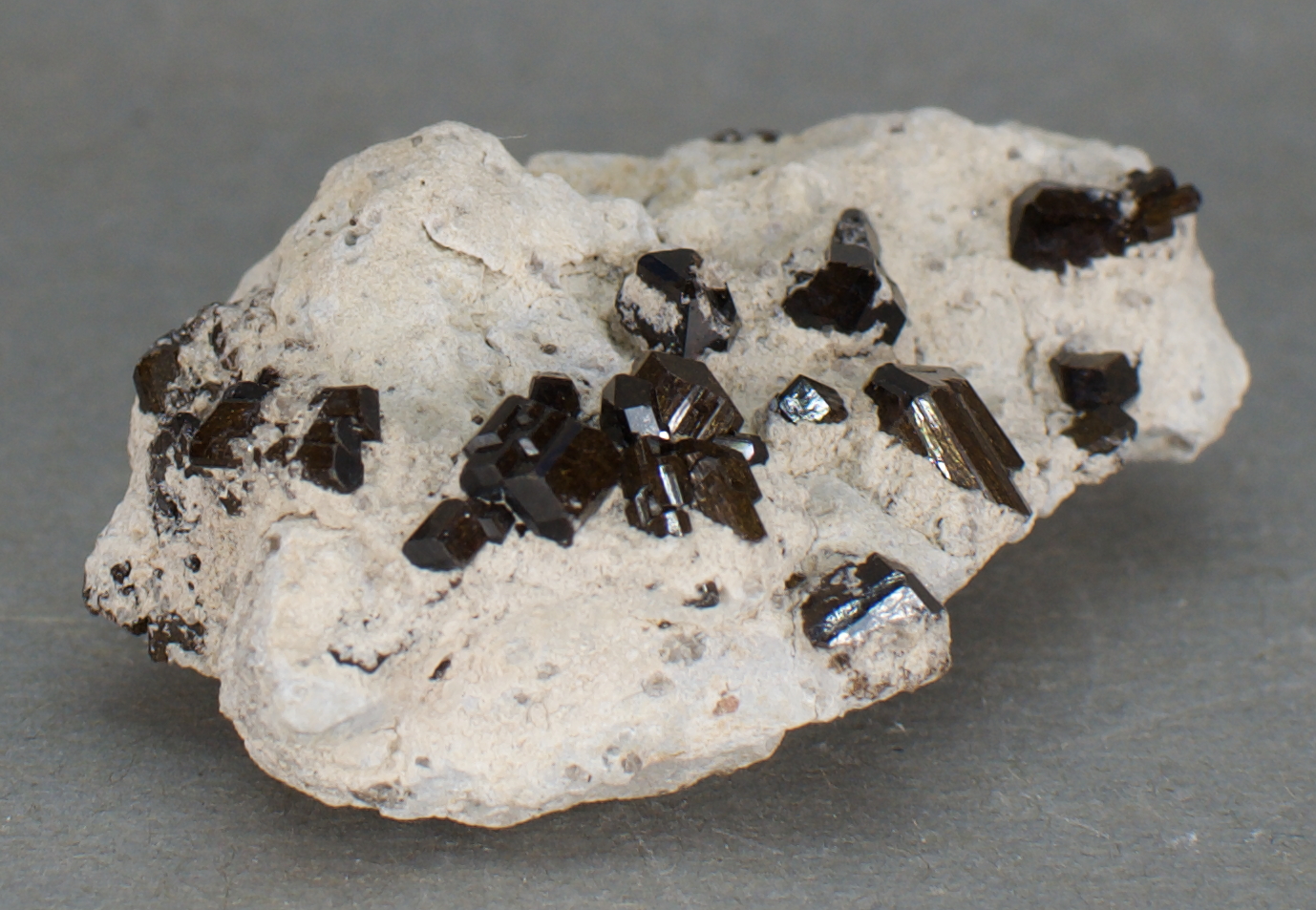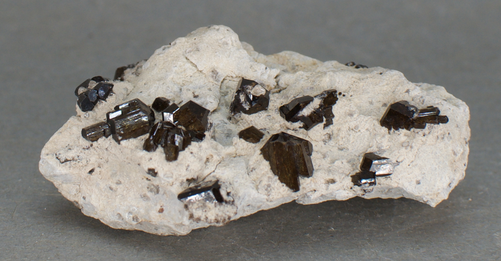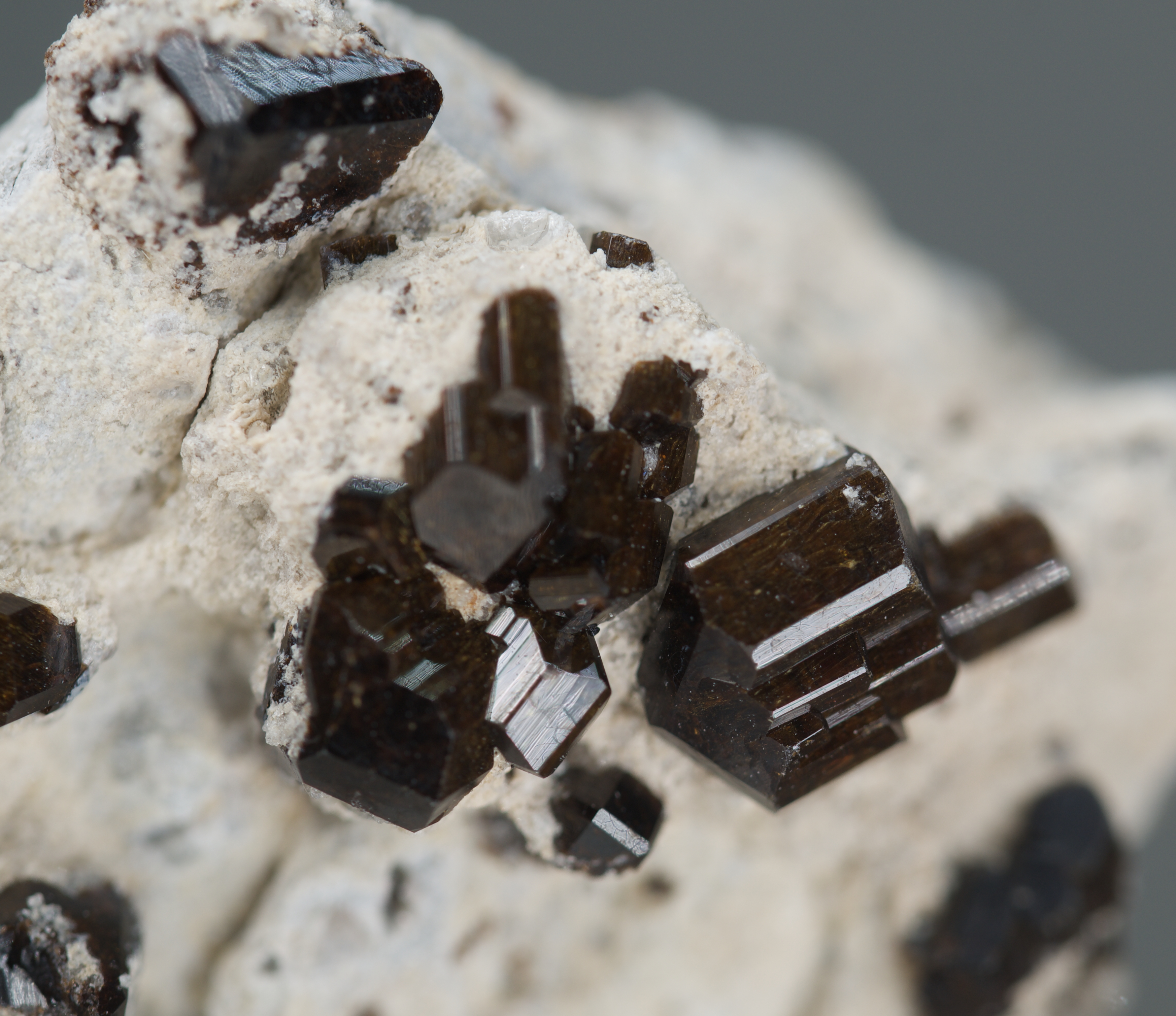 crystals to almost 7 mm on matrix. Fluor-buergerite - NaFe3+Al6(Si6O18)(BO3)3O3F