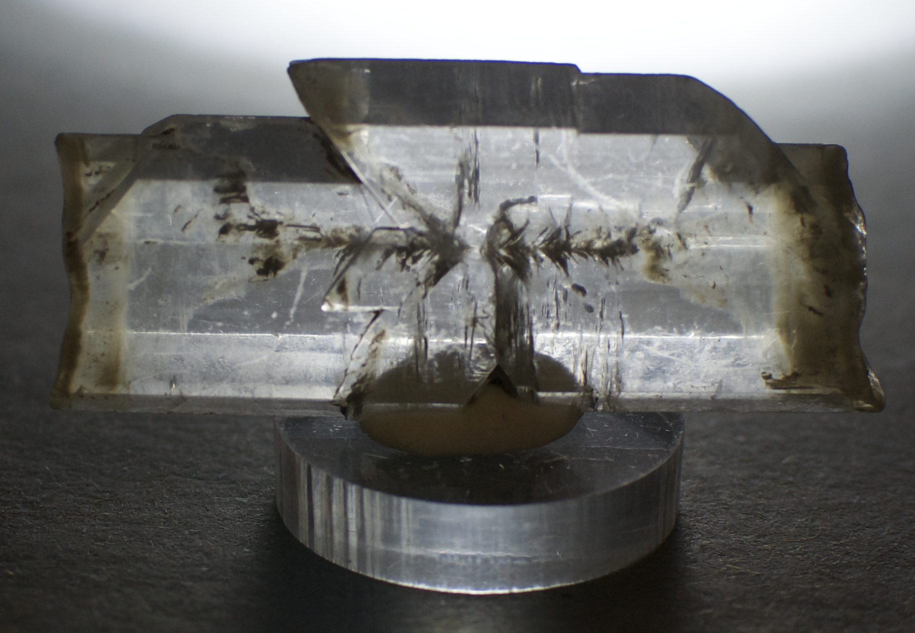 twinned along the c-axis, having excellent clarity. Doubly