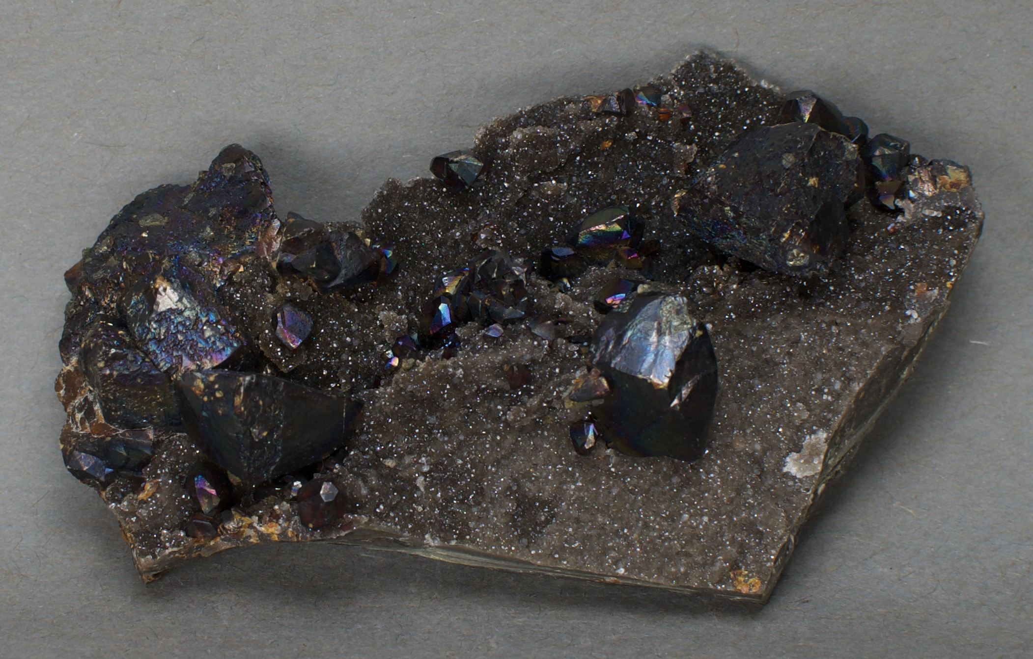 sparkly quartz microcrystals, upon which sit numerous
