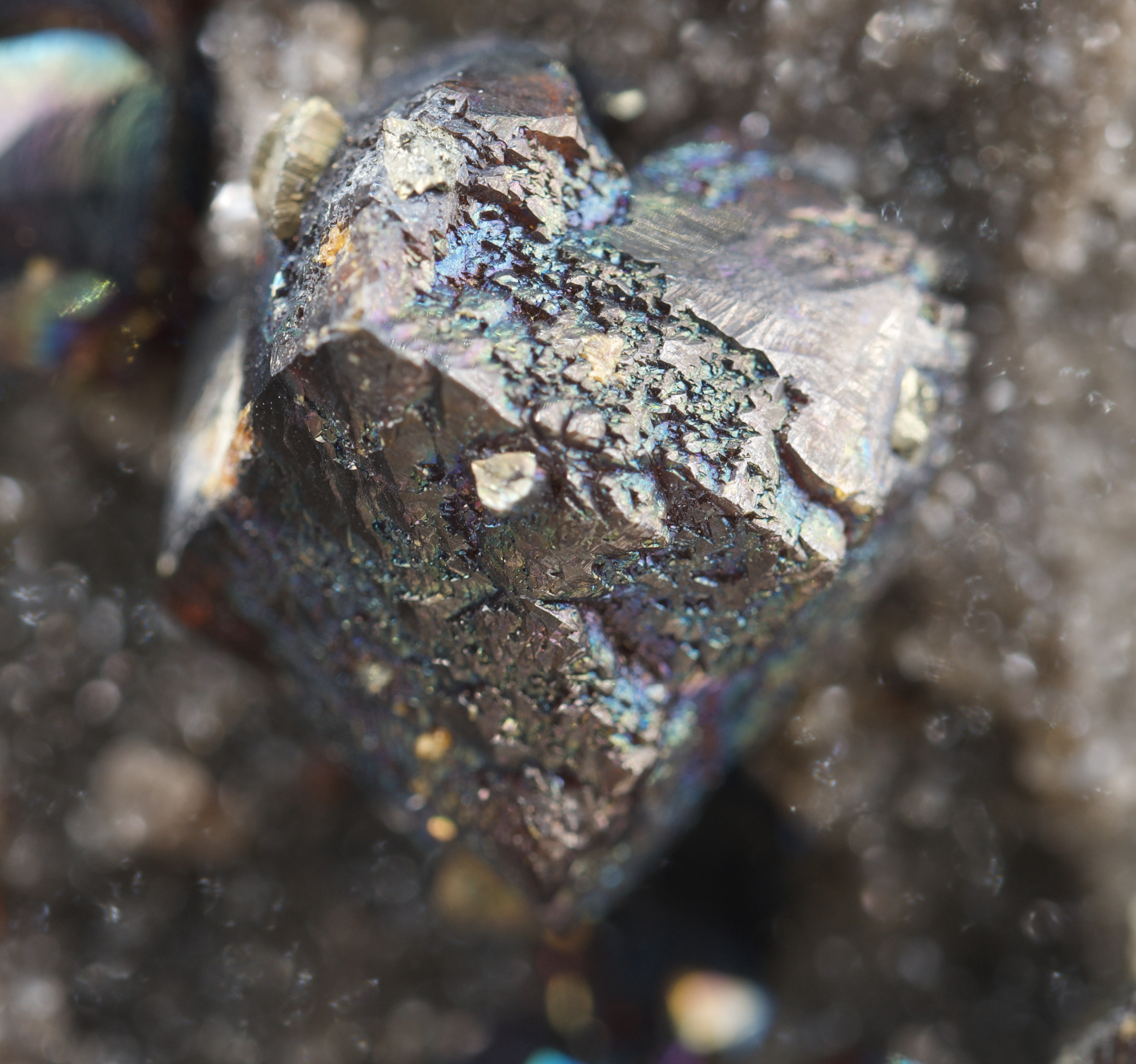 chalcopyrite crystals to a few mm are also present. On the