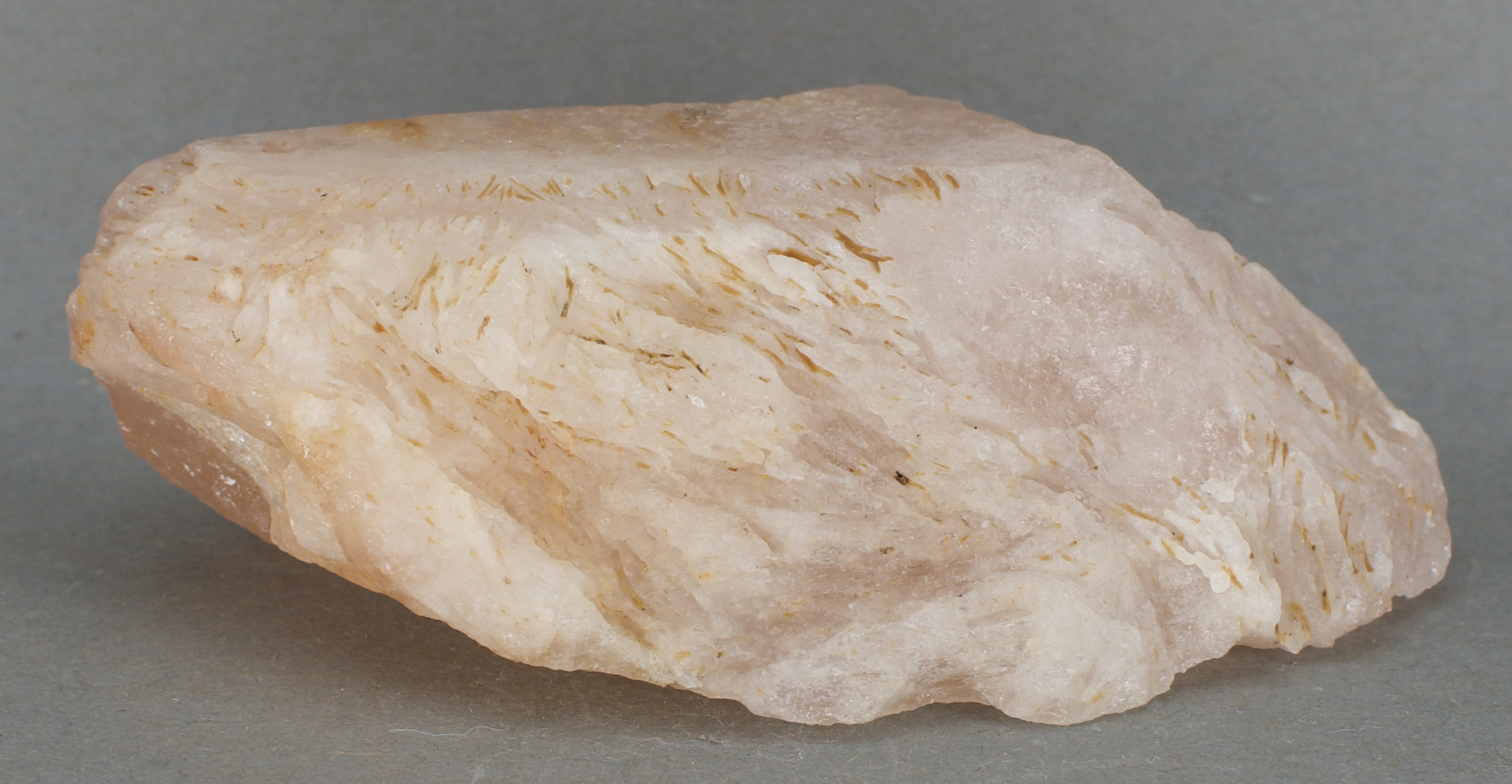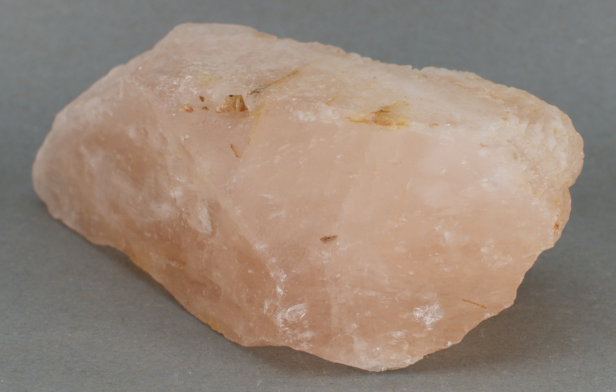 | 16865: Beryl variety Morganite - $125 White Queen Mine, Hiriart Mountain, Pala, Pala Mining District, San Diego County, California Cabinet - 11.5 x 5.7 x 3.7 cm 364 grams Specimen status: Available Send an email with specimen number to order A large, translucent beryl crystal
