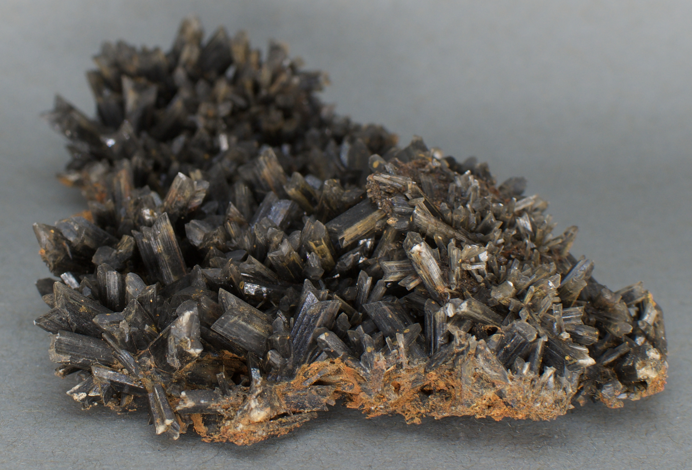 1.1 cm, rendered black by iron hydroxide/oxide inclusions.