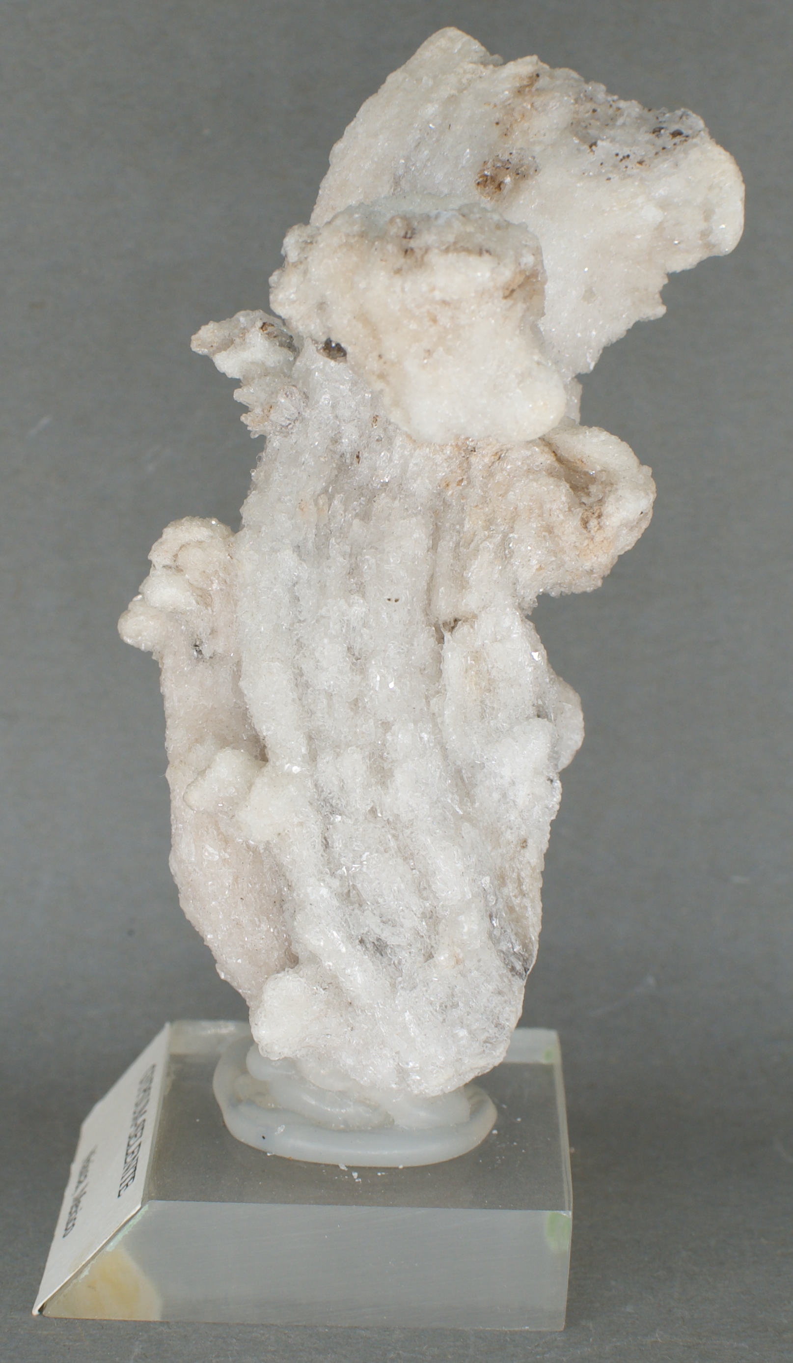 | 32286: Gypsum variety Ramshorn - $30 Naica, Saucillo Municipality, Chihuahua, Mexico Cabinet - 9.9 x 5.6 x 5.1 cm 178 grams including base Specimen status: Available Send an email with specimen number to order A vertical sugary and sculptural