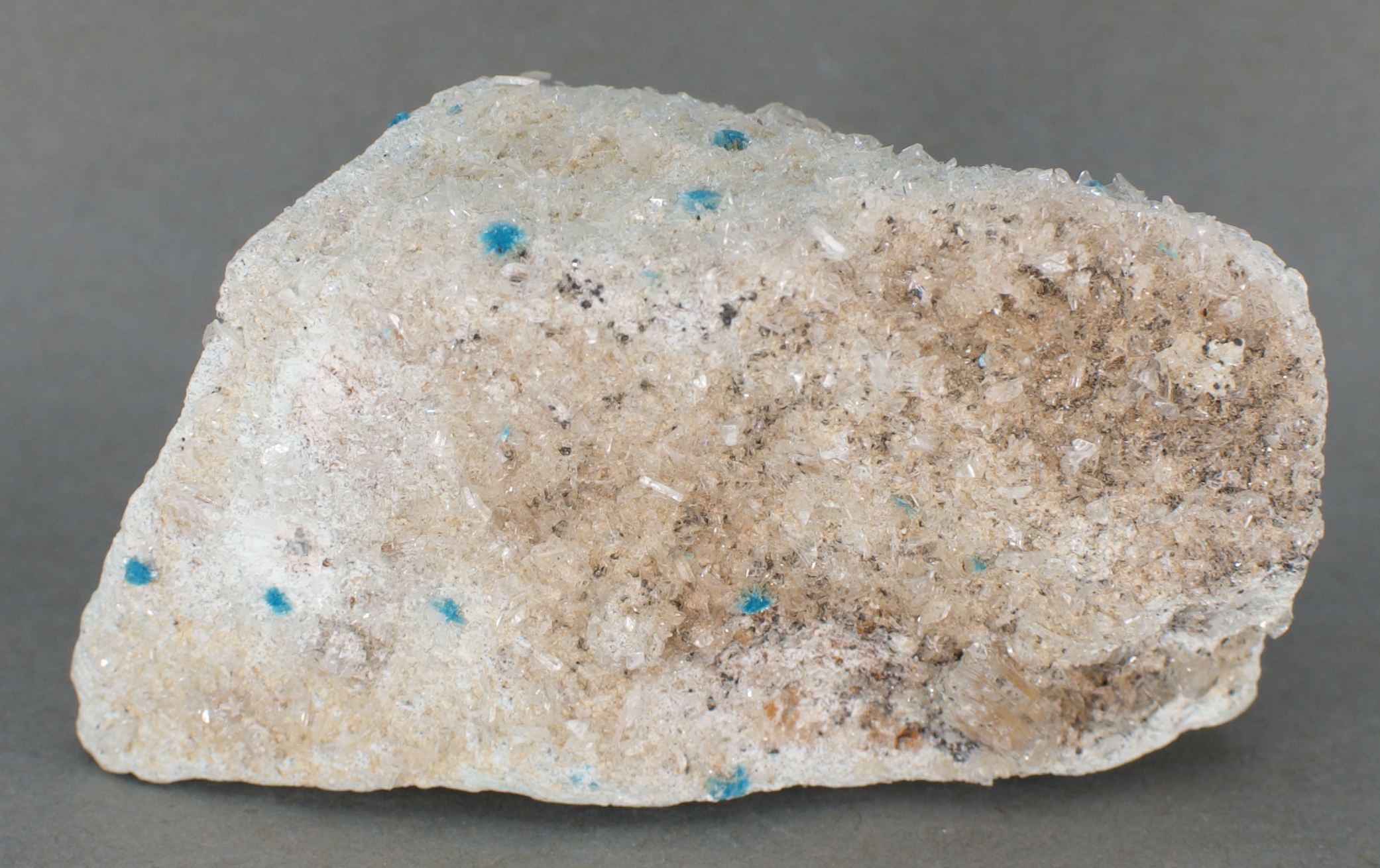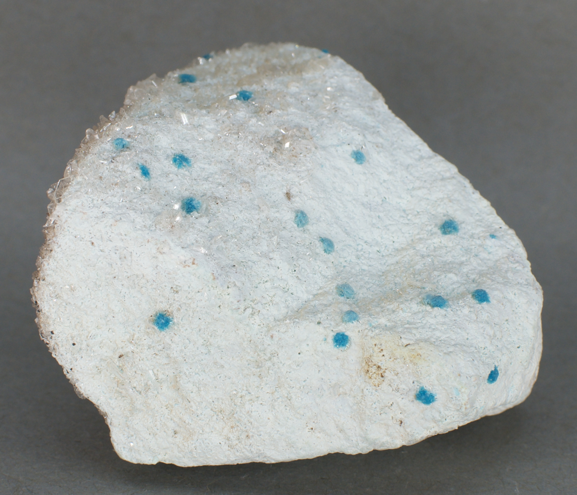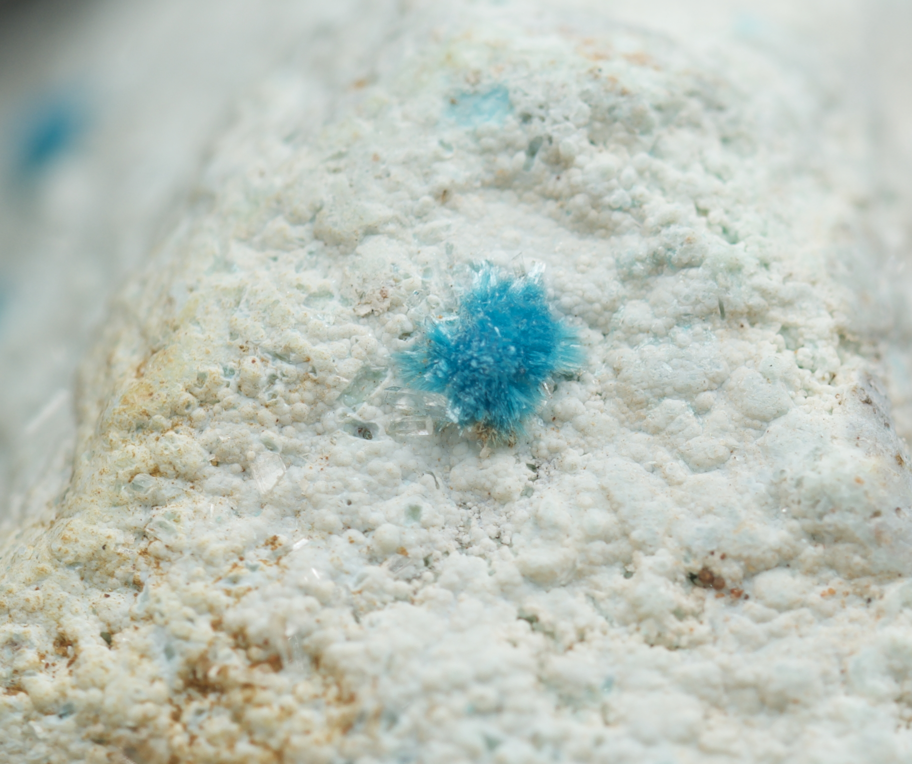 blue, acicular devilline associated with small, sparkling