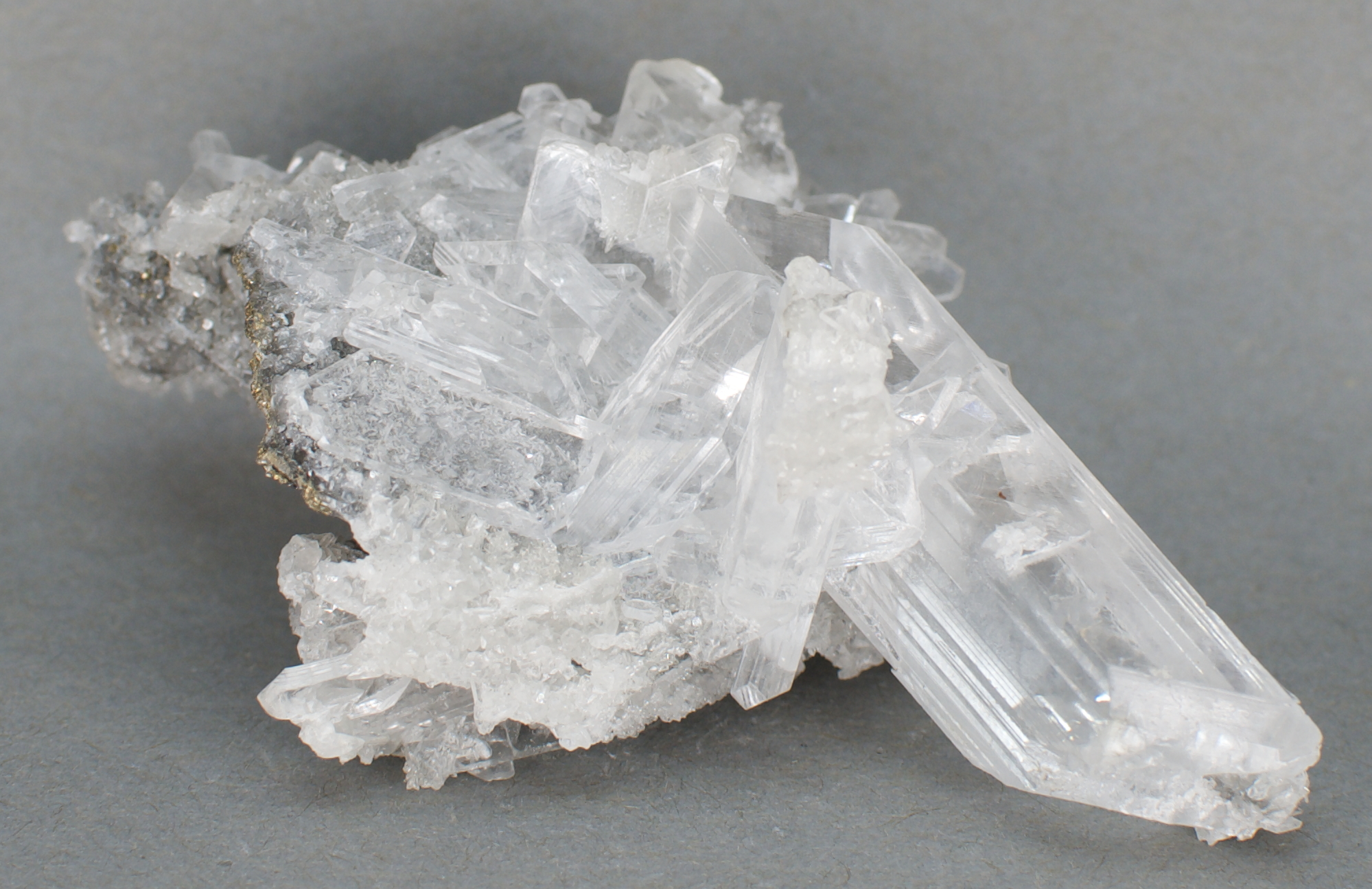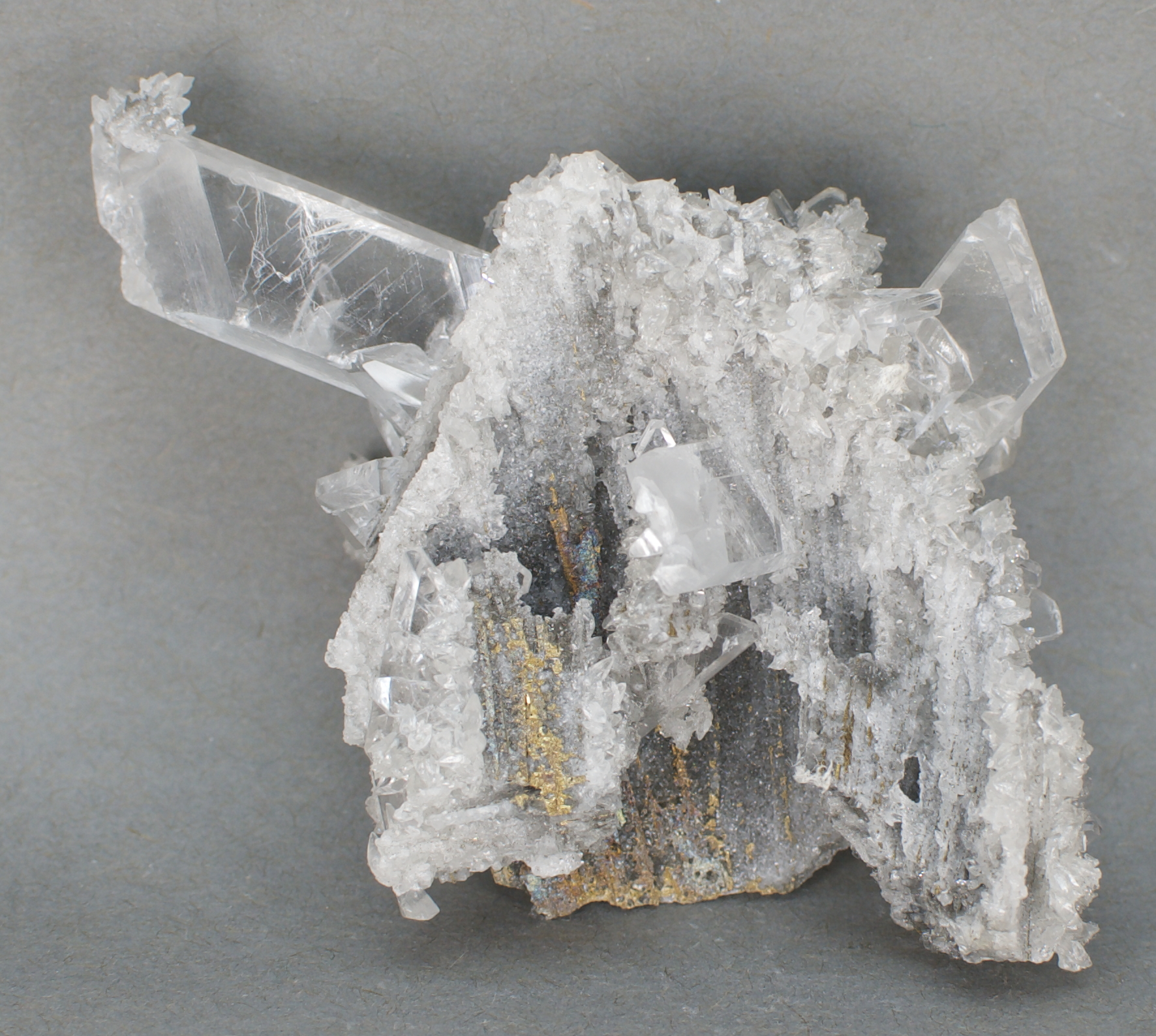 after ? and Pyrite - $24 Naica, Saucillo Municipality, Chihuahua, Mexico Small cabinet - 9.0 x 6.2 x 3.9 cm 67 grams Ex Benny Fenn Specimen status: Available Send an email with specimen number to order Terminated, water clear gypsum crystals