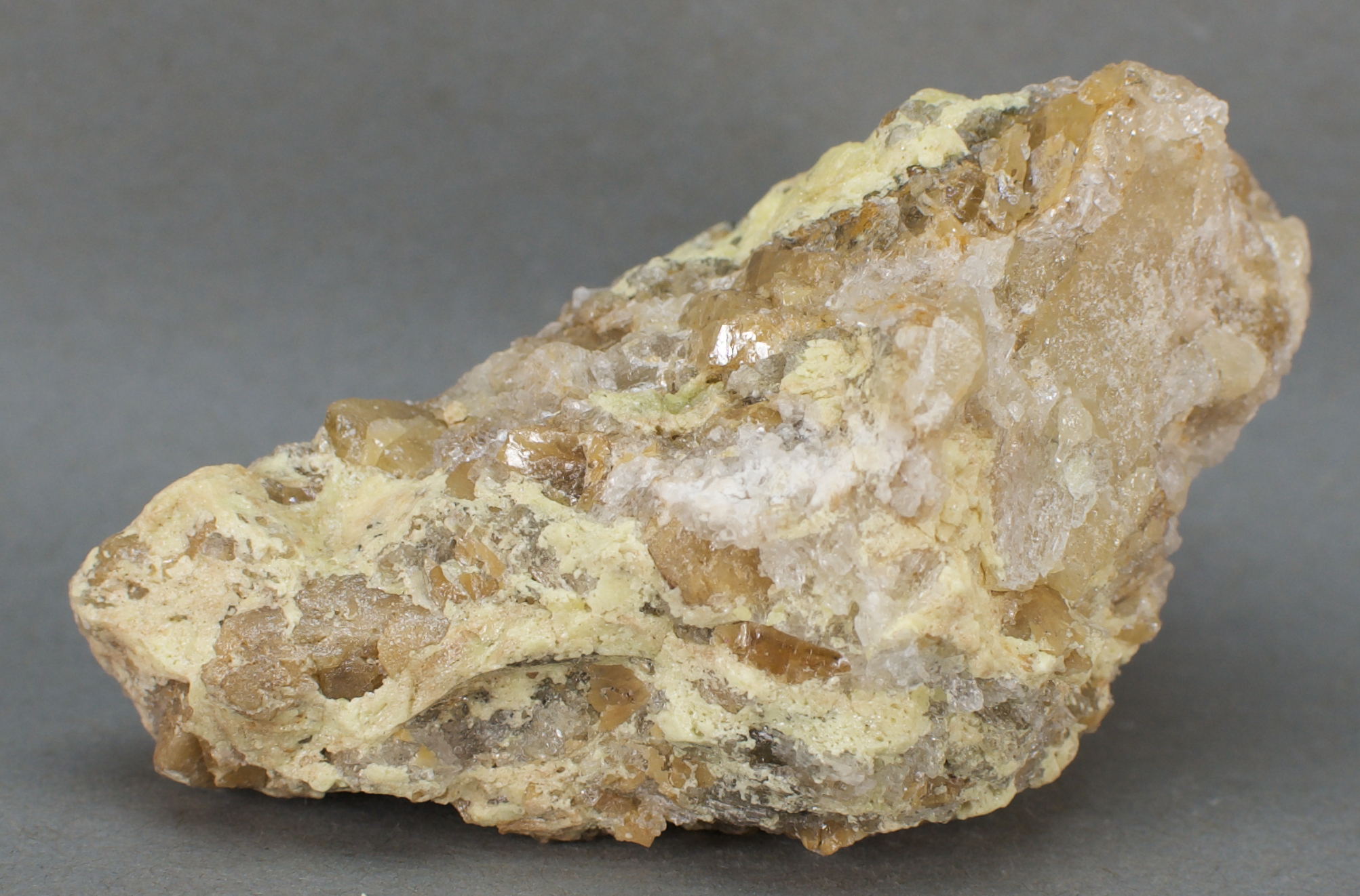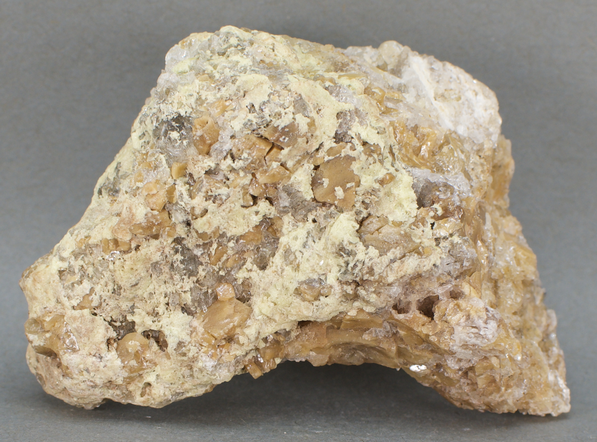 | 37436: Anglesite, Sulfur and Gypsum - $20 Erupción Mine, Los Lamentos Mountains, Ahumada Municipality, Chihuahua, Mexico Small cabinet - 8.1 x 5.5 x 3.7 cm 233 grams Specimen status: Reserved Send an email with specimen number to order This locality/association specimen