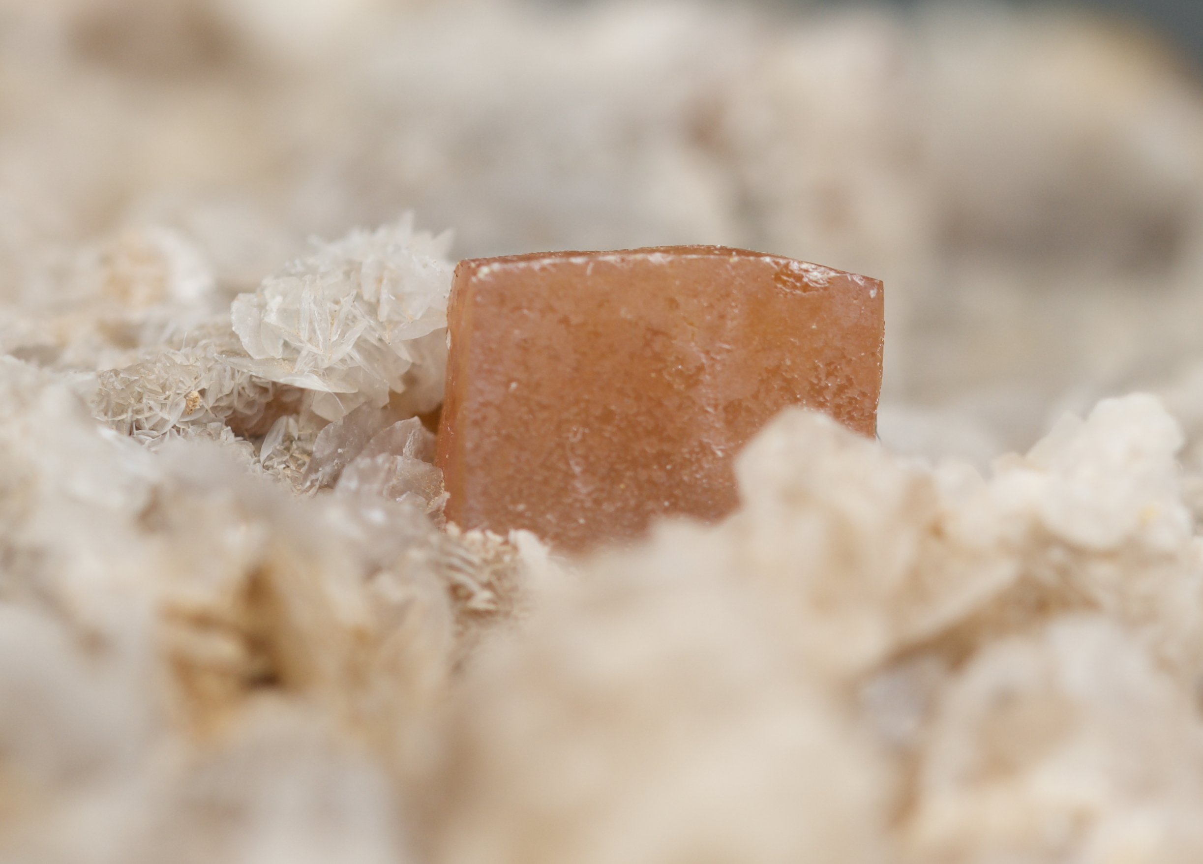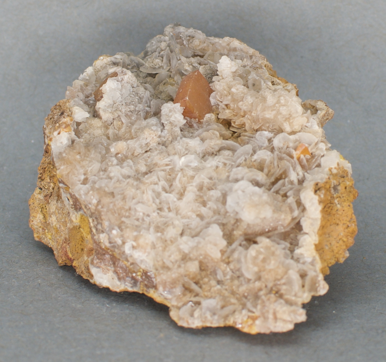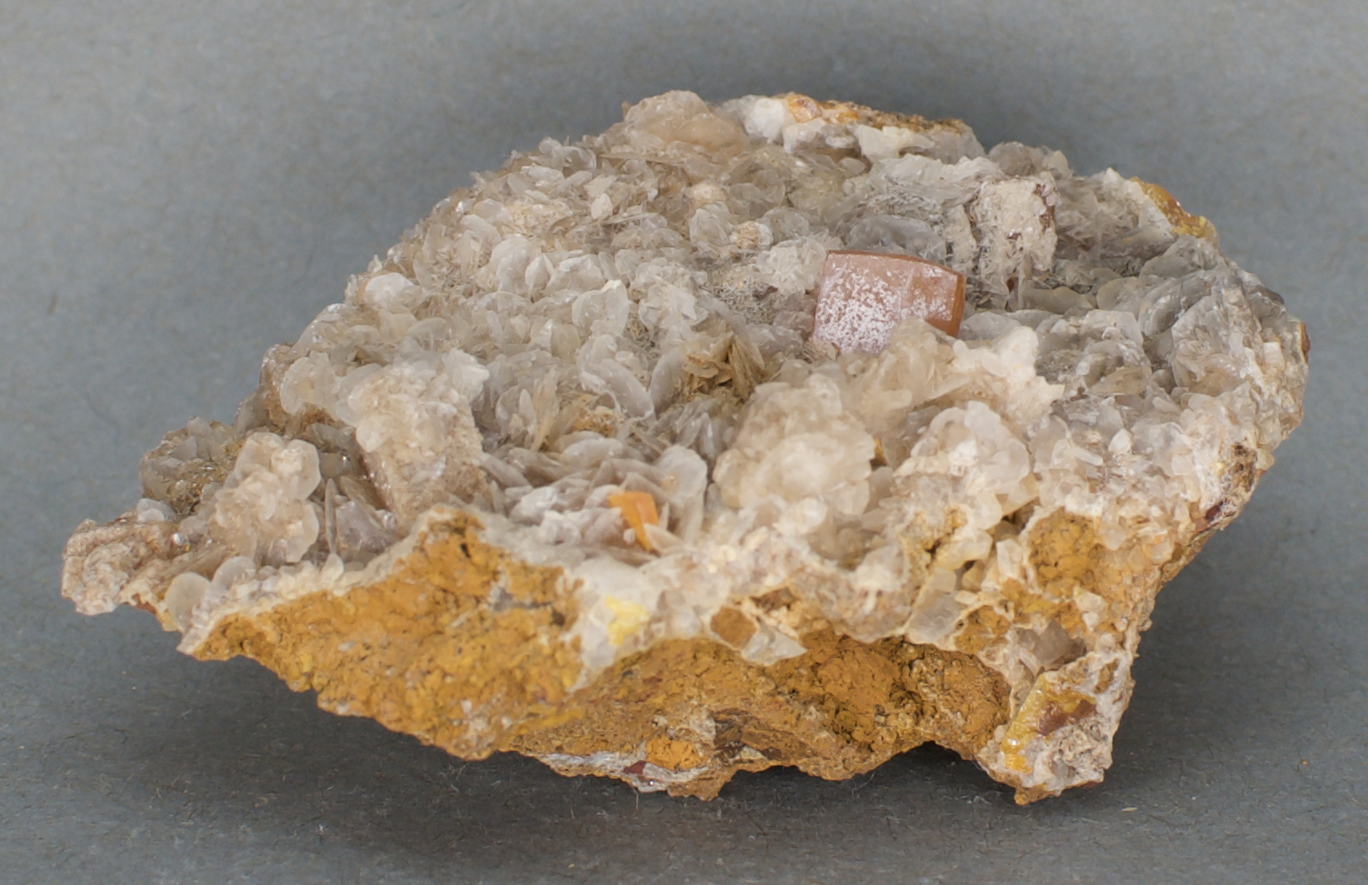 wulfenites, partially enrobed in) somewhat dingy, platy