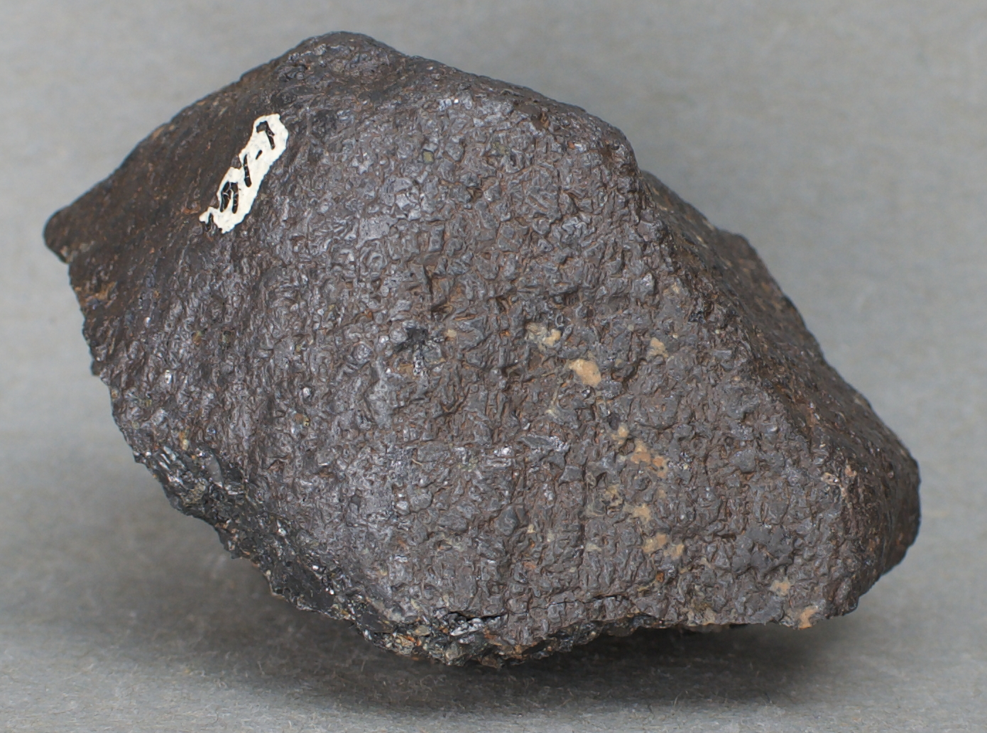 | 43749: Chromite - $8 Black Oak Mine, Georgetown, Georgetown District, East Segment Mother Lode, El Dorado County, California Miniature - 5.7 x 4.1 x 3.6 cm 135 grams Specimen status: Reserved Send an email with specimen number to order A broken chromite nodule, showing