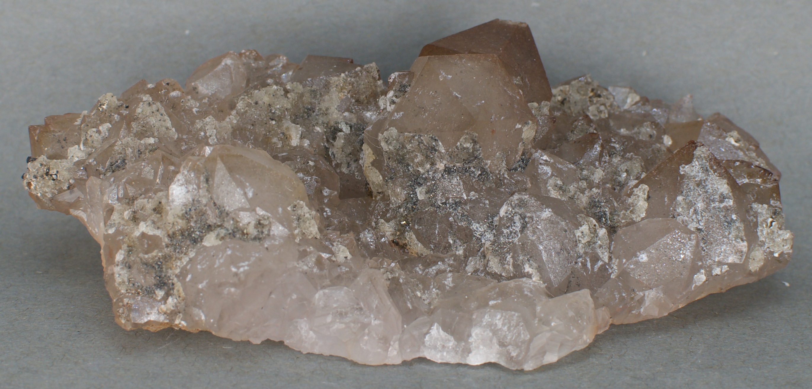 | 44435: Quartz - $20 Morocco Cabinet - 11.0 x 6.1 x 3.5 cm 212 grams Illustrated: Mineral Specimen Cleaning and Development for the Amateur, page 296 Specimen status: Available Send an email with specimen number to order A plate of nicely translucent, light