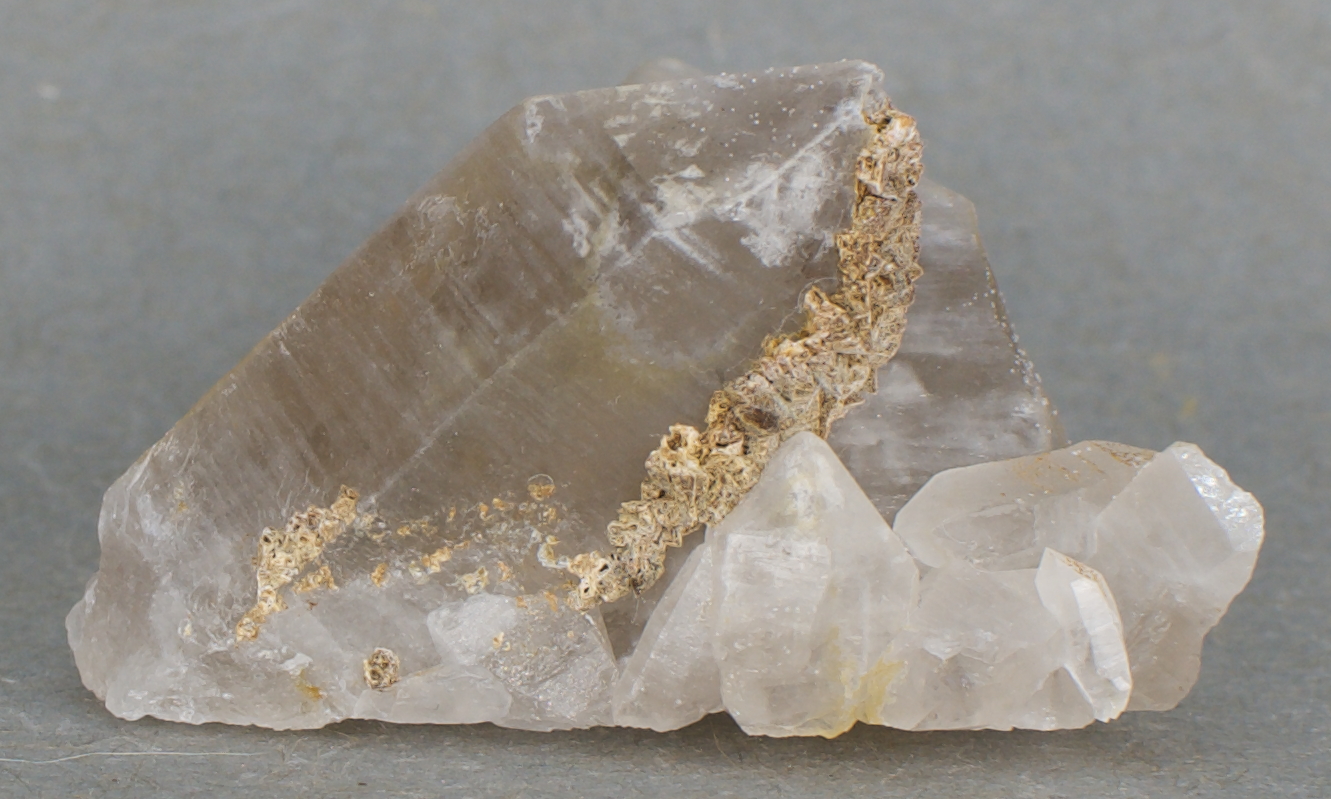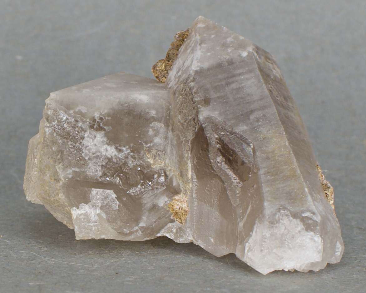 Siderite - $8 Colorado Miniature - 4.9 x 3.9 x 2.5 cm 41 grams Illustrated: Mineral Specimen Cleaning and Development for the Amateur, page 102 Specimen status: Available Send an email with specimen number to order A cluster of very lightly smoky,