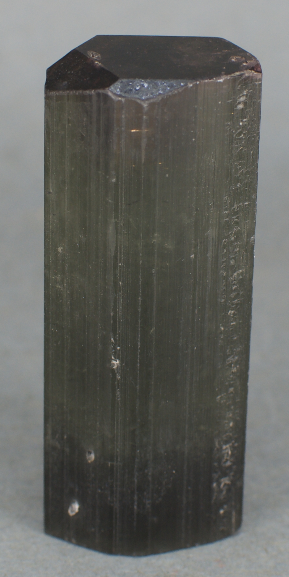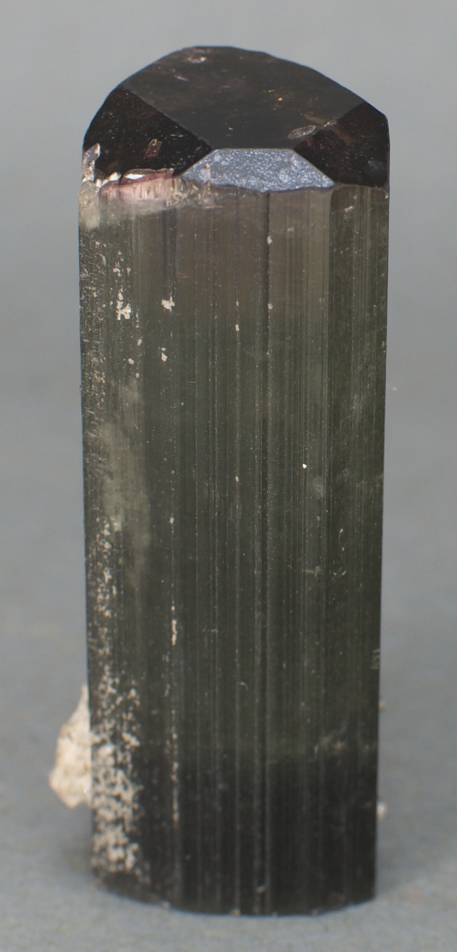 $350 Himalaya Mine, Gem Hill, Mesa Grande Mining District, San Diego County, California Miniature - 5.4 x 2.2 x 1.9 cm 49 grams Specimen status: Available Send an email with specimen number to order A doubly terminated, dark green,