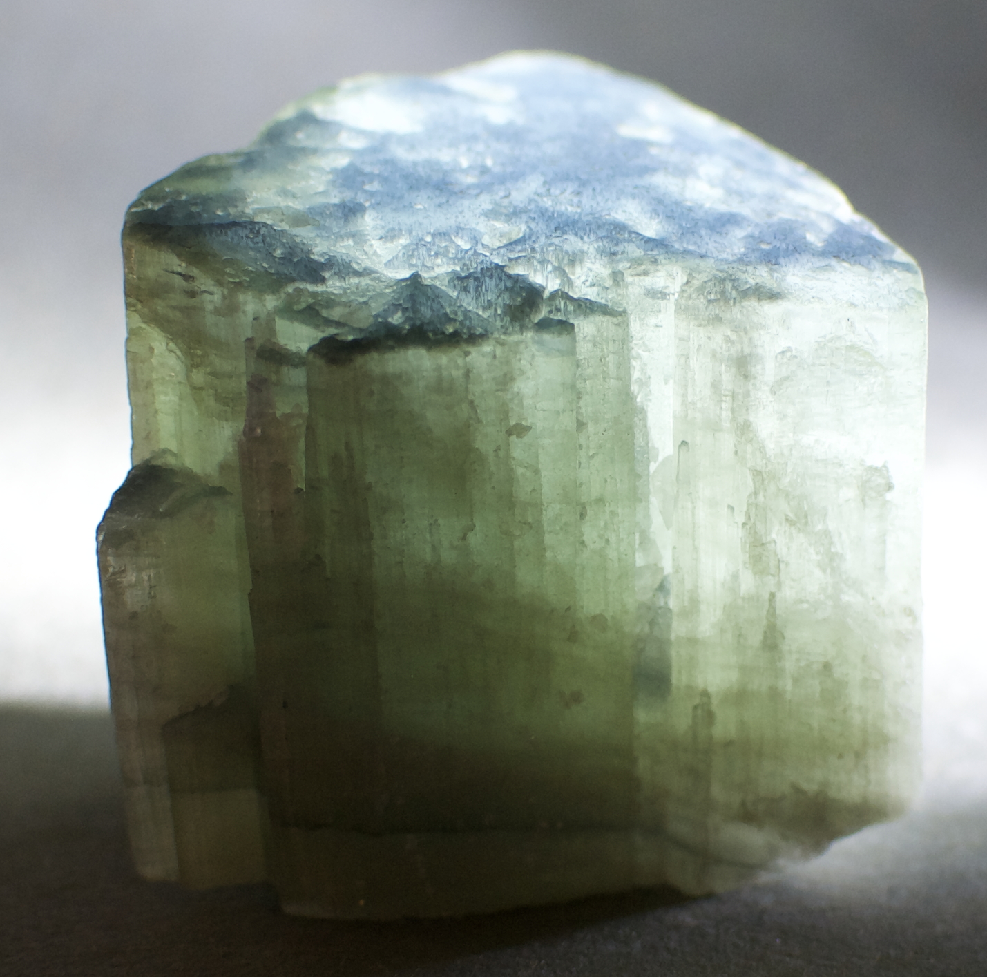 lightly healed break. Colored tourmalines from this