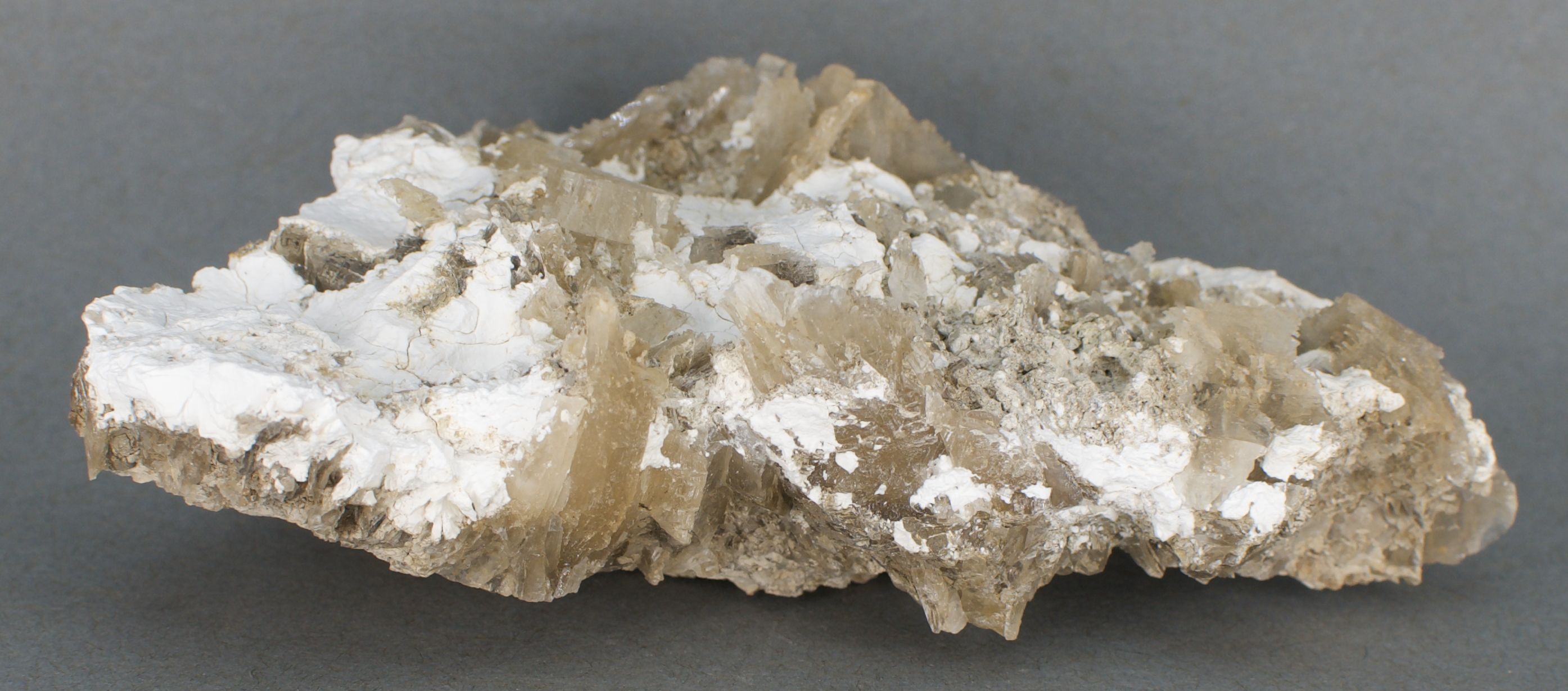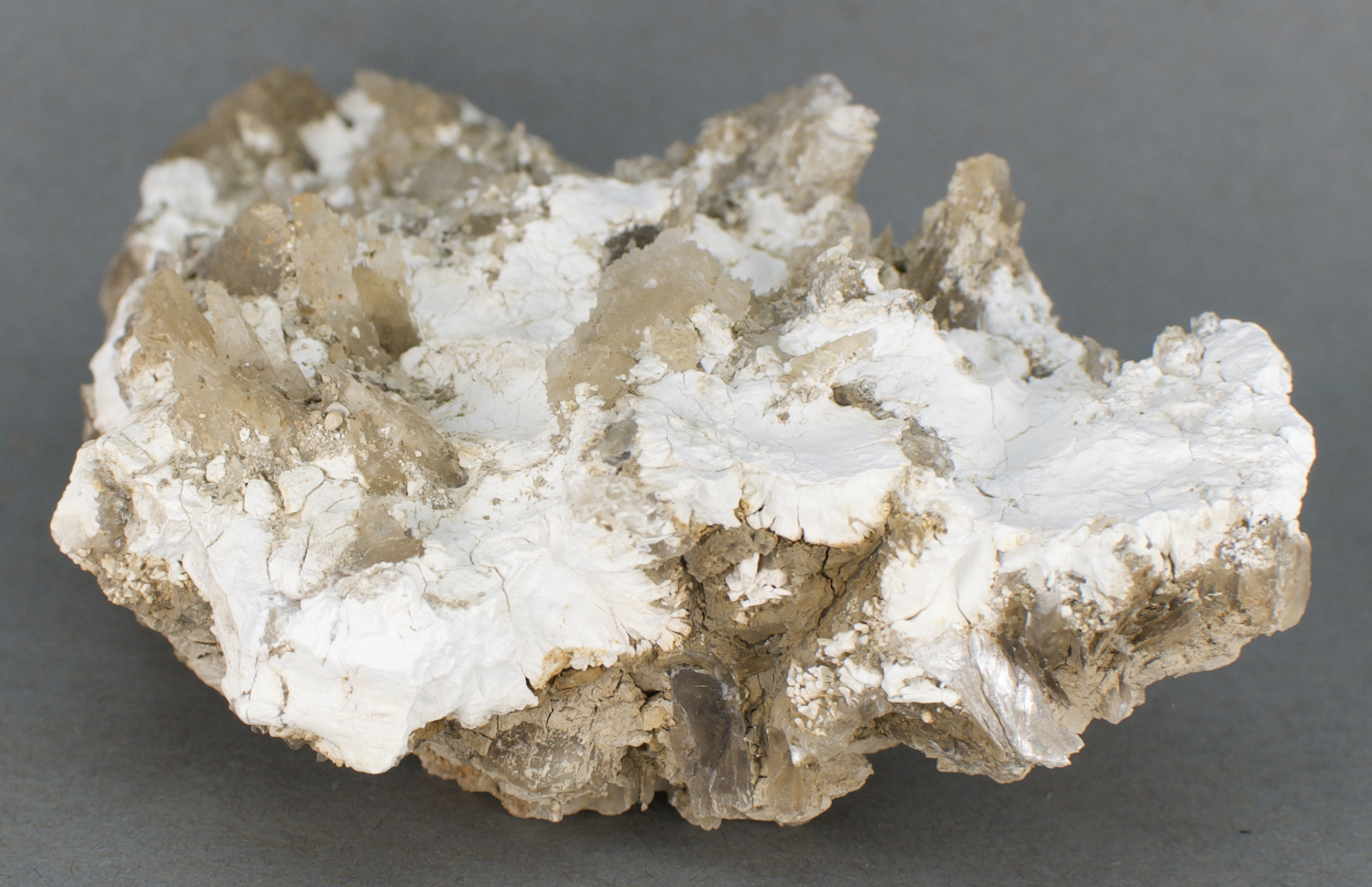 known as basaluminite) with nondescript gypsum crystals on