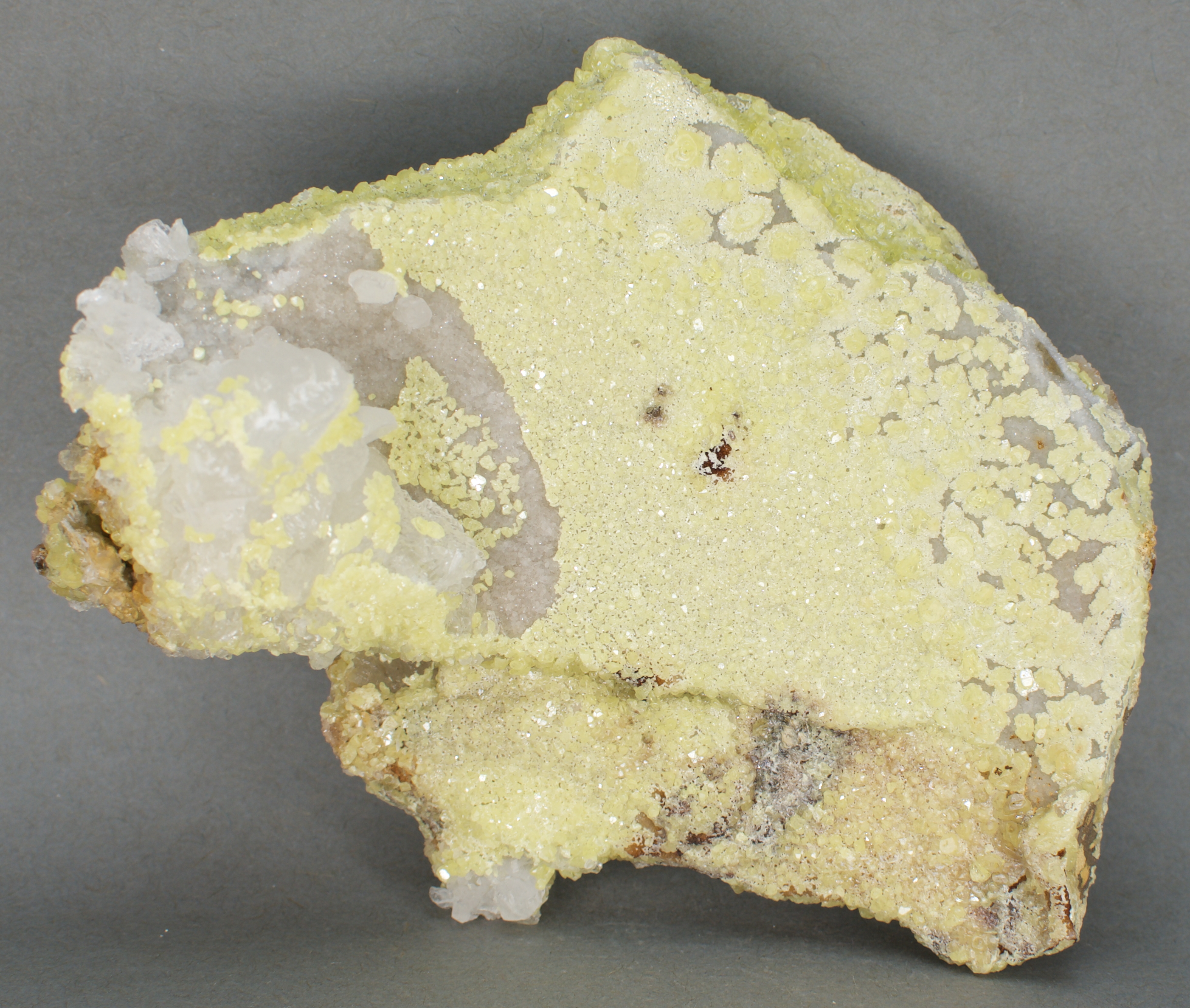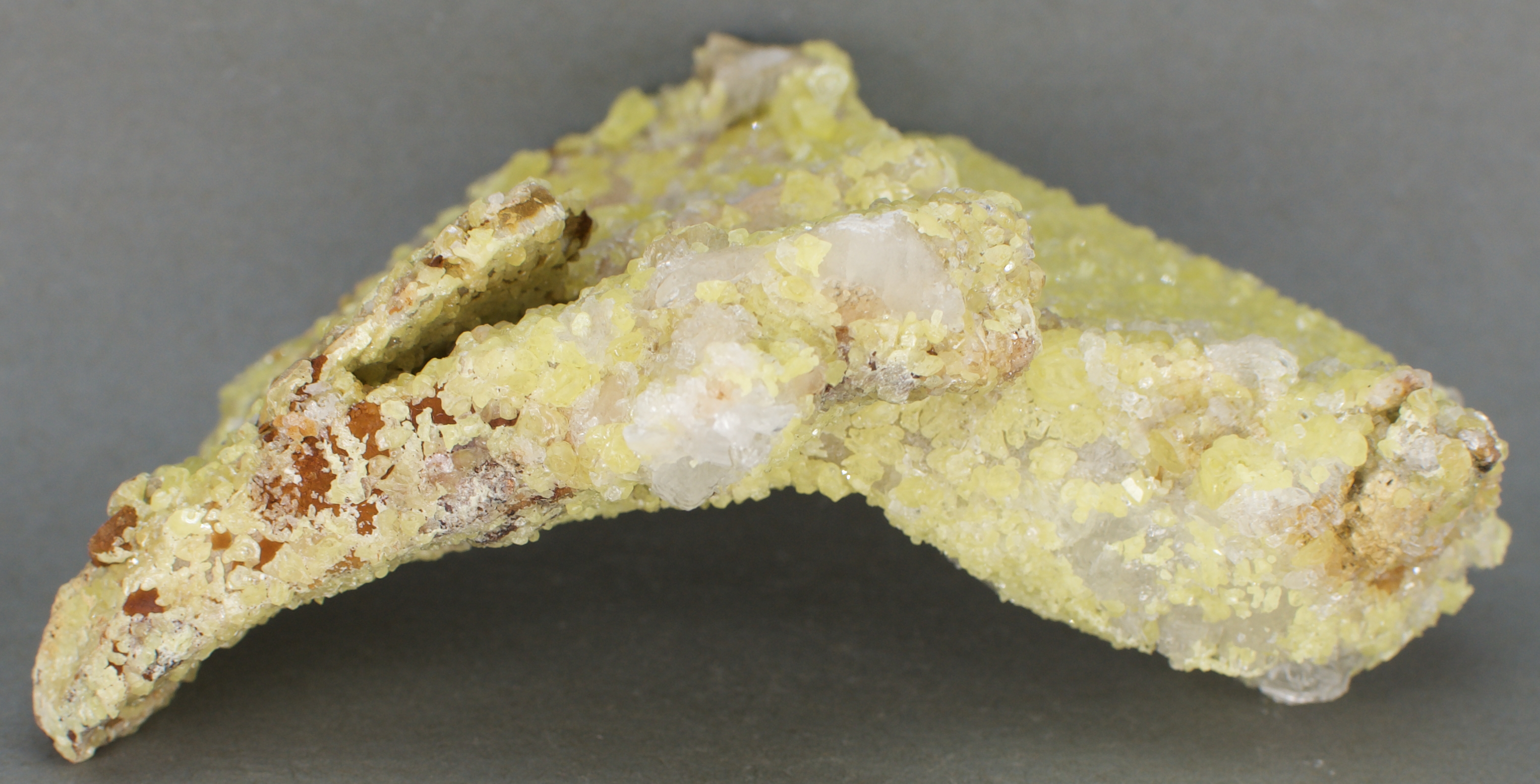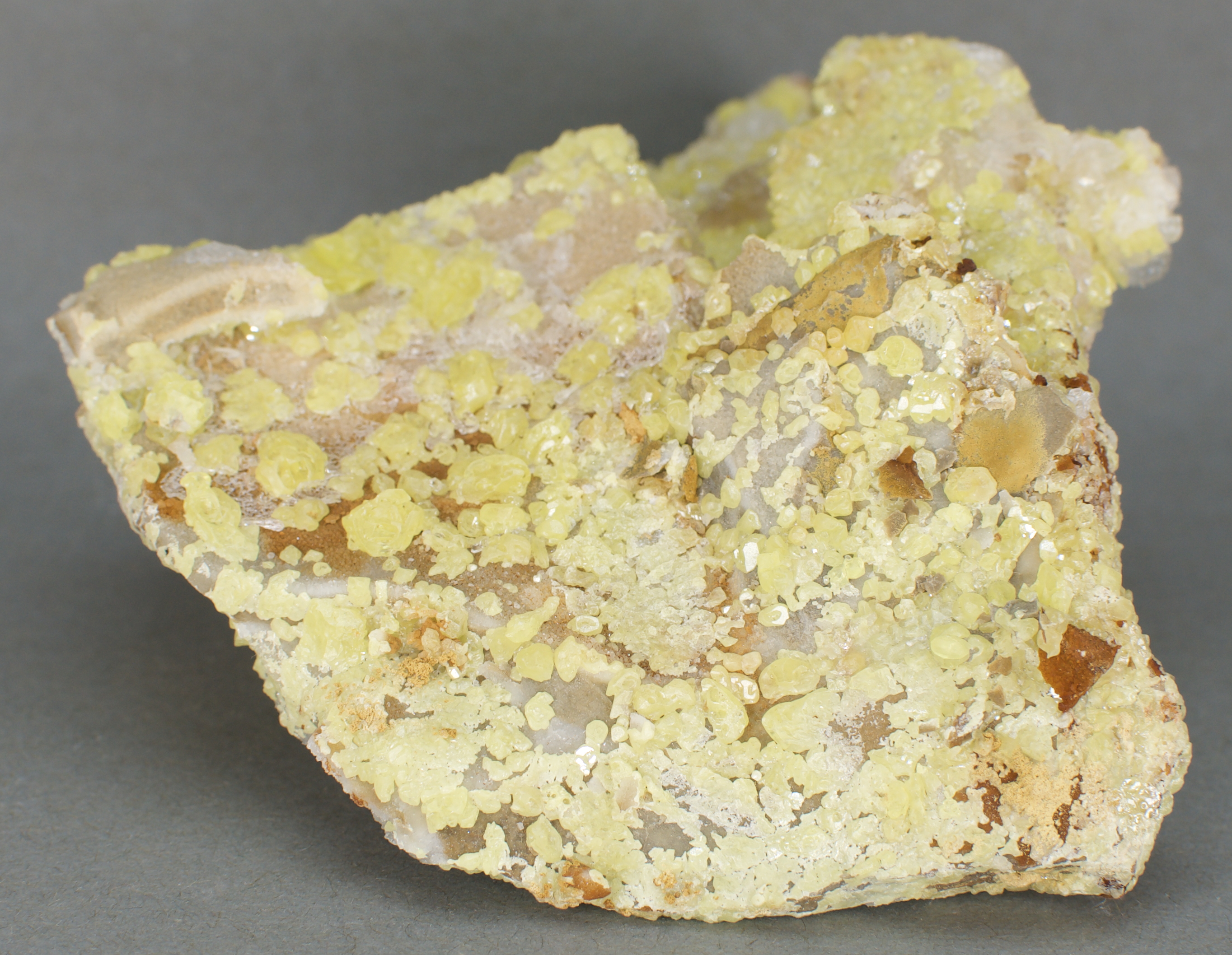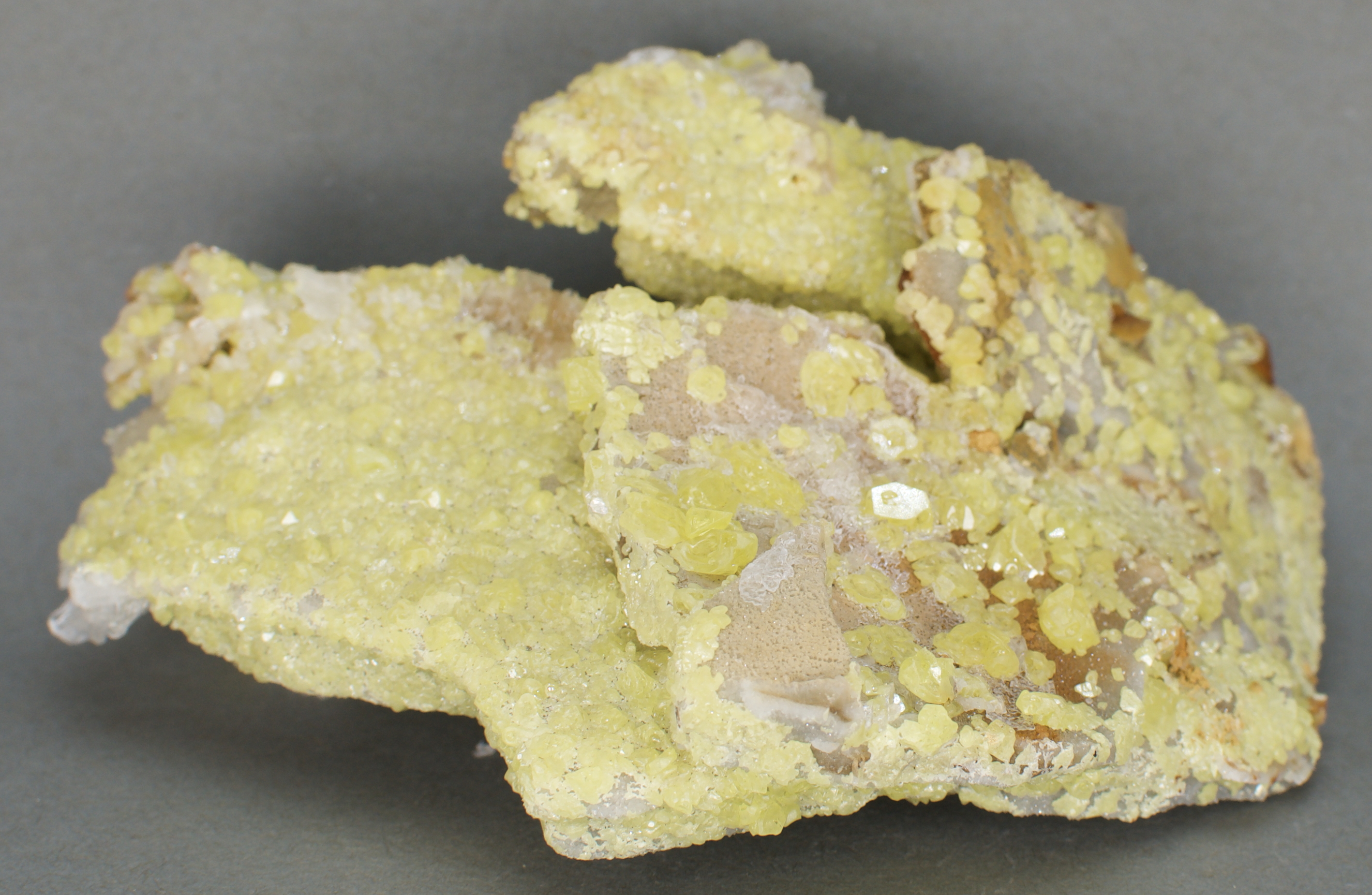 abundant, bright yellow sulfur crystals to about 5 mm. A