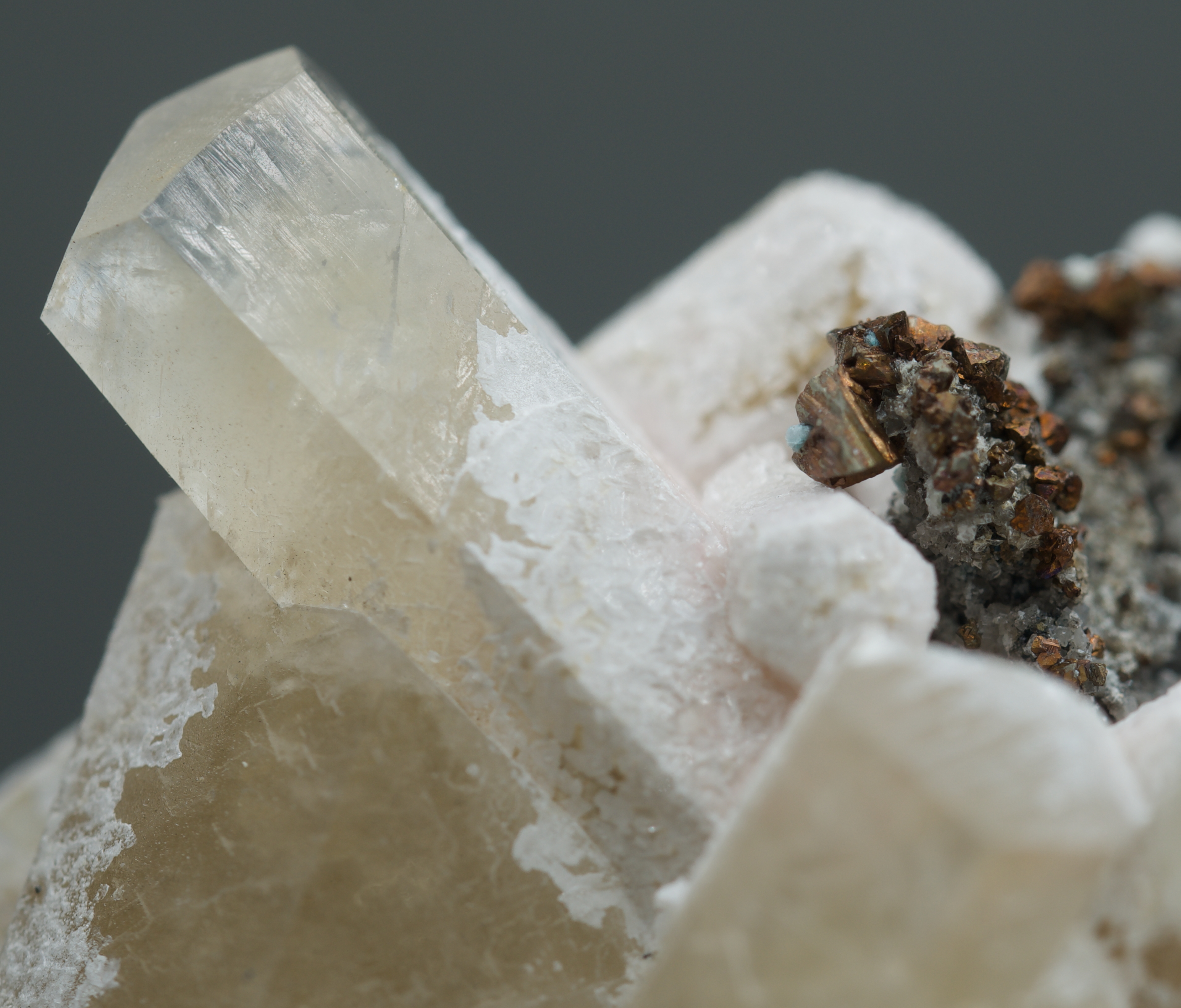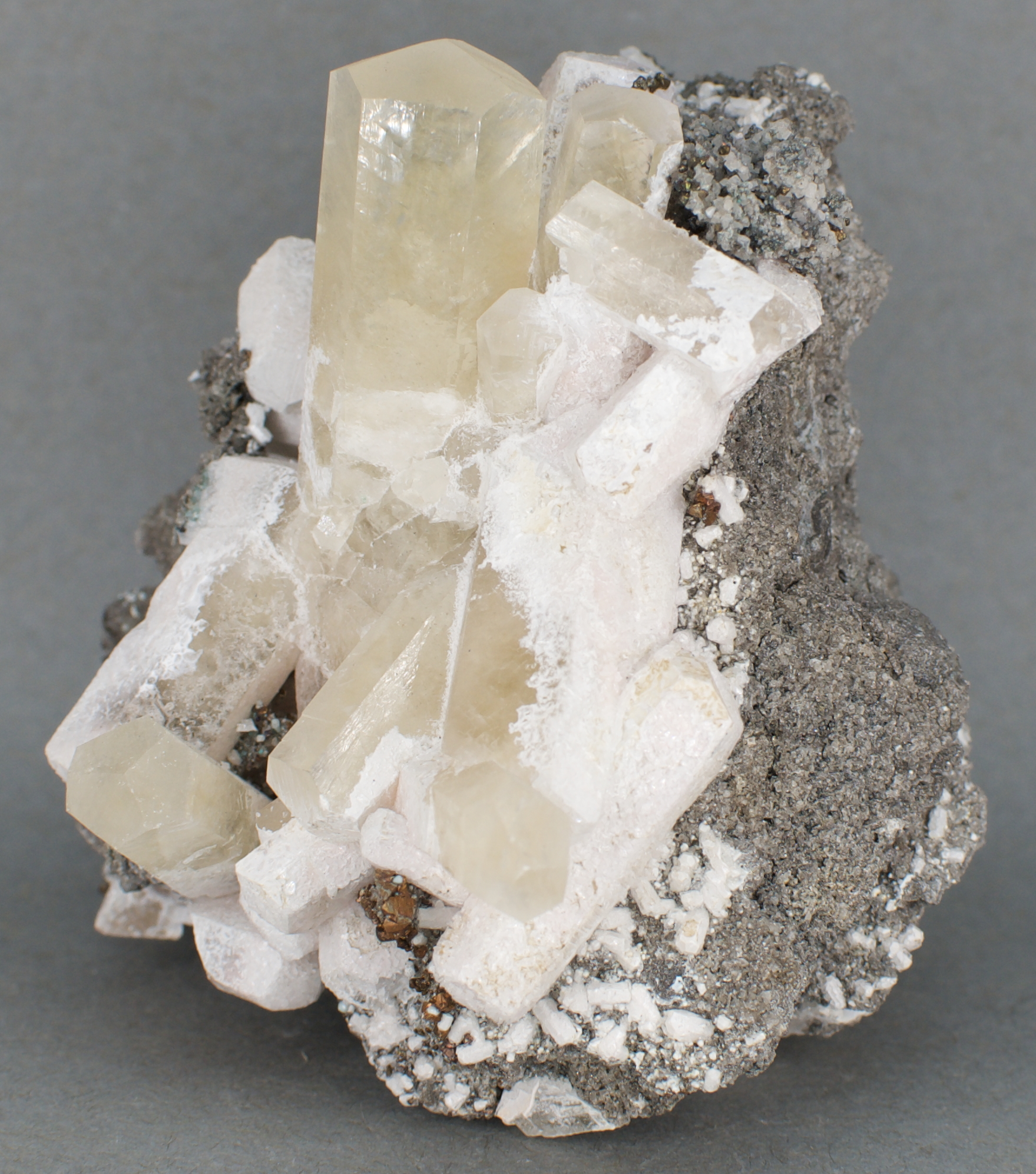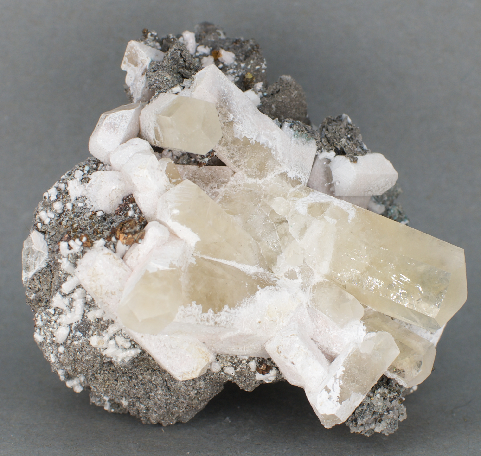 gemmy, prismatic calcite crystals to 3.5 cm aesthetically
