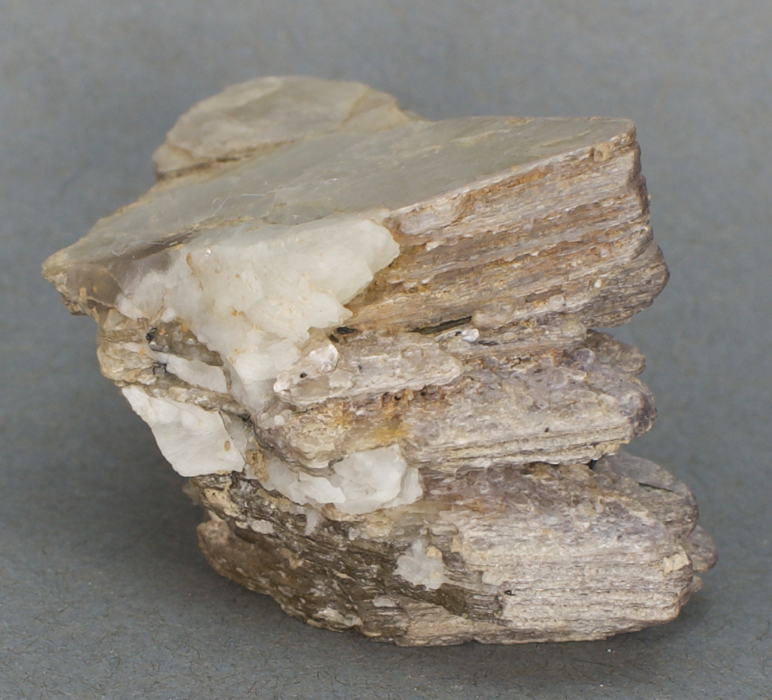 | 29069: Cassiterite and Muscovite - $60 Cryo-Genie Mine, Warner Springs, Warner Springs Mining District, San Diego County, California Miniature - 4.7 x 3.3 x 3.1 cm 49 grams Specimen status: Reserved Send an email with specimen number to order A slightly divergent 'book' of