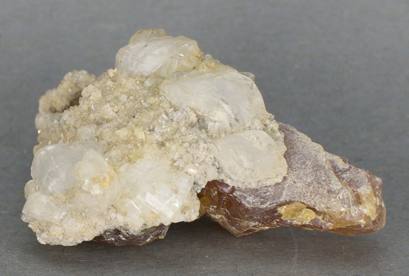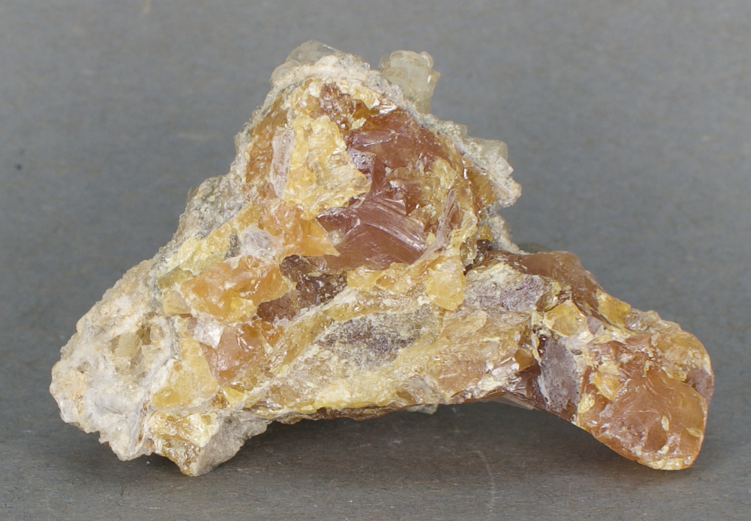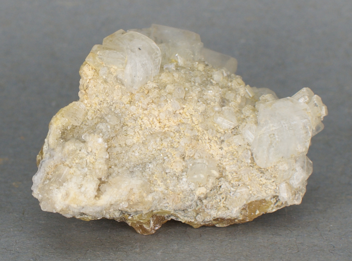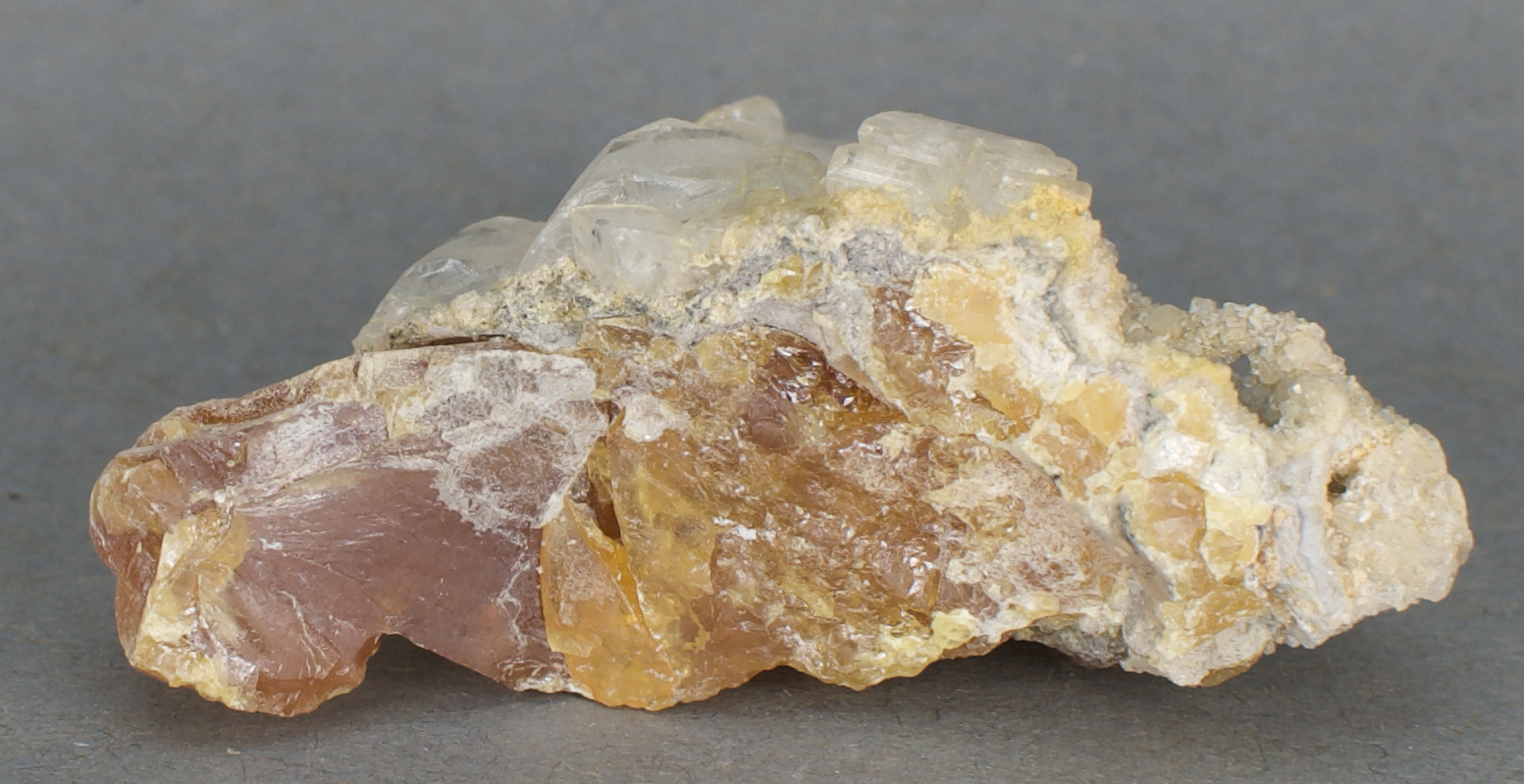 cover one face of an amber, massive sulfur matrix. Very