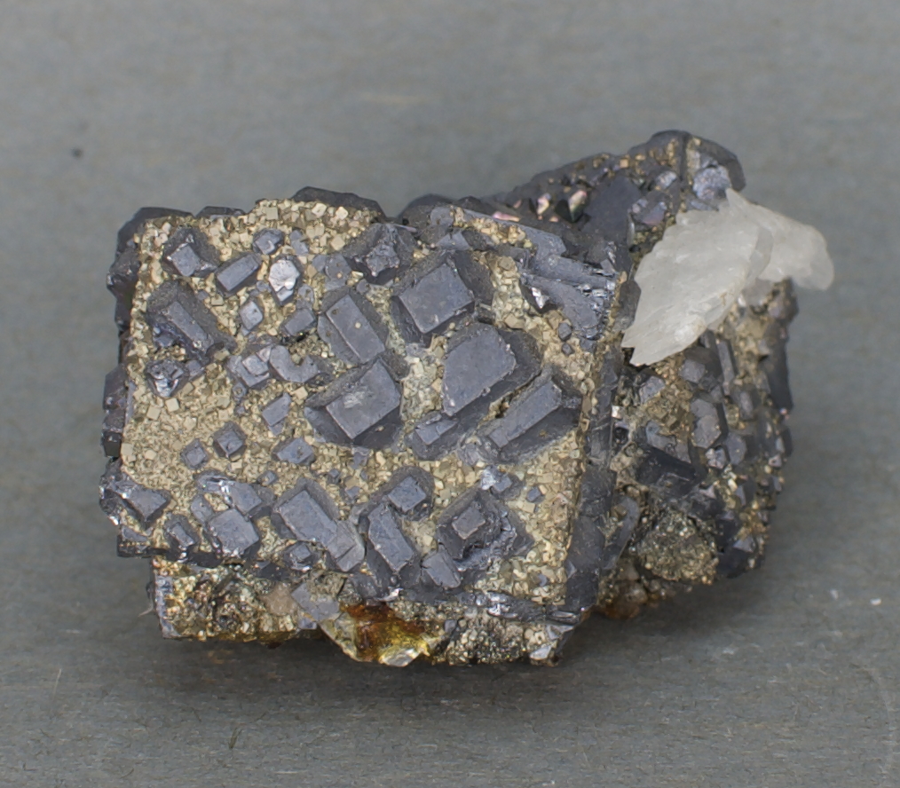 gypsum blade group, tiny but abundant pyrite cubes and