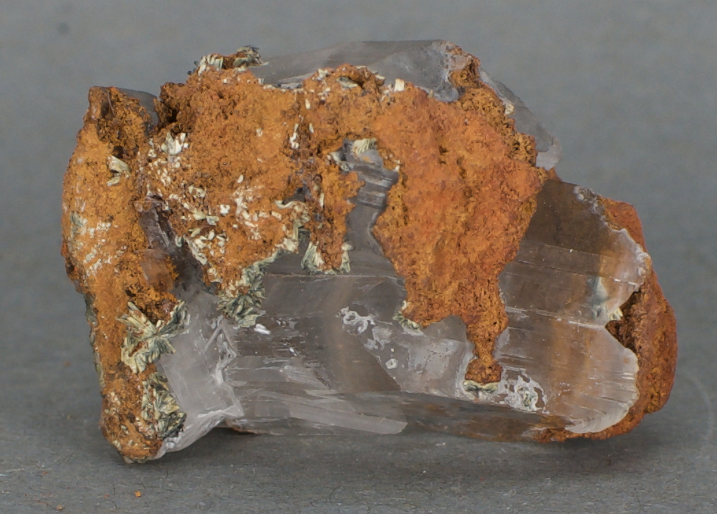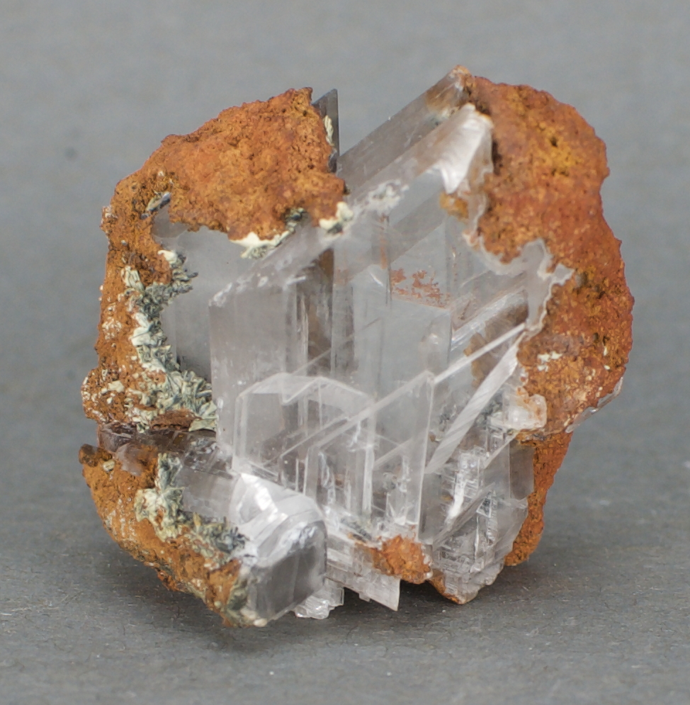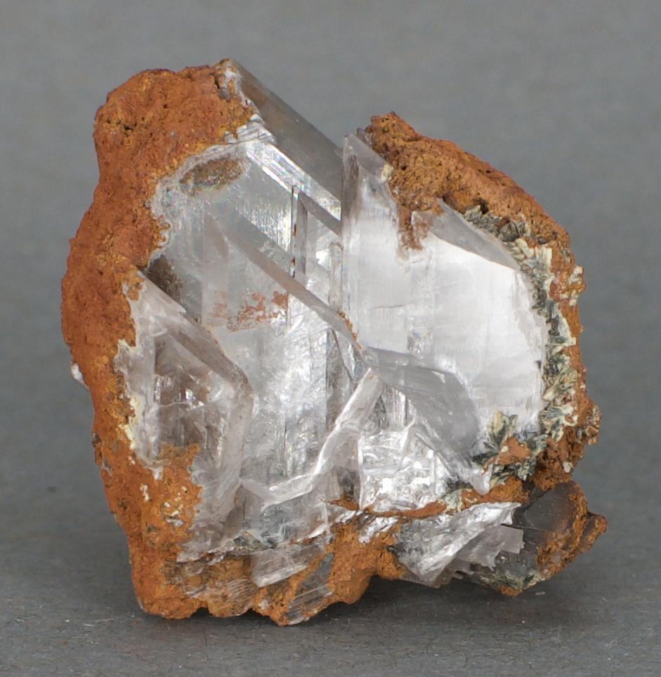 variety Selenite - $28 Ojuela Mine, Mapimí, Mapimí Municipality, Durango, Mexico Miniature - 3.0 x 2.9 x 2.2 cm 19 grams Specimen status: Available Send an email with specimen number to order A cleft in limonite matrix hosts
