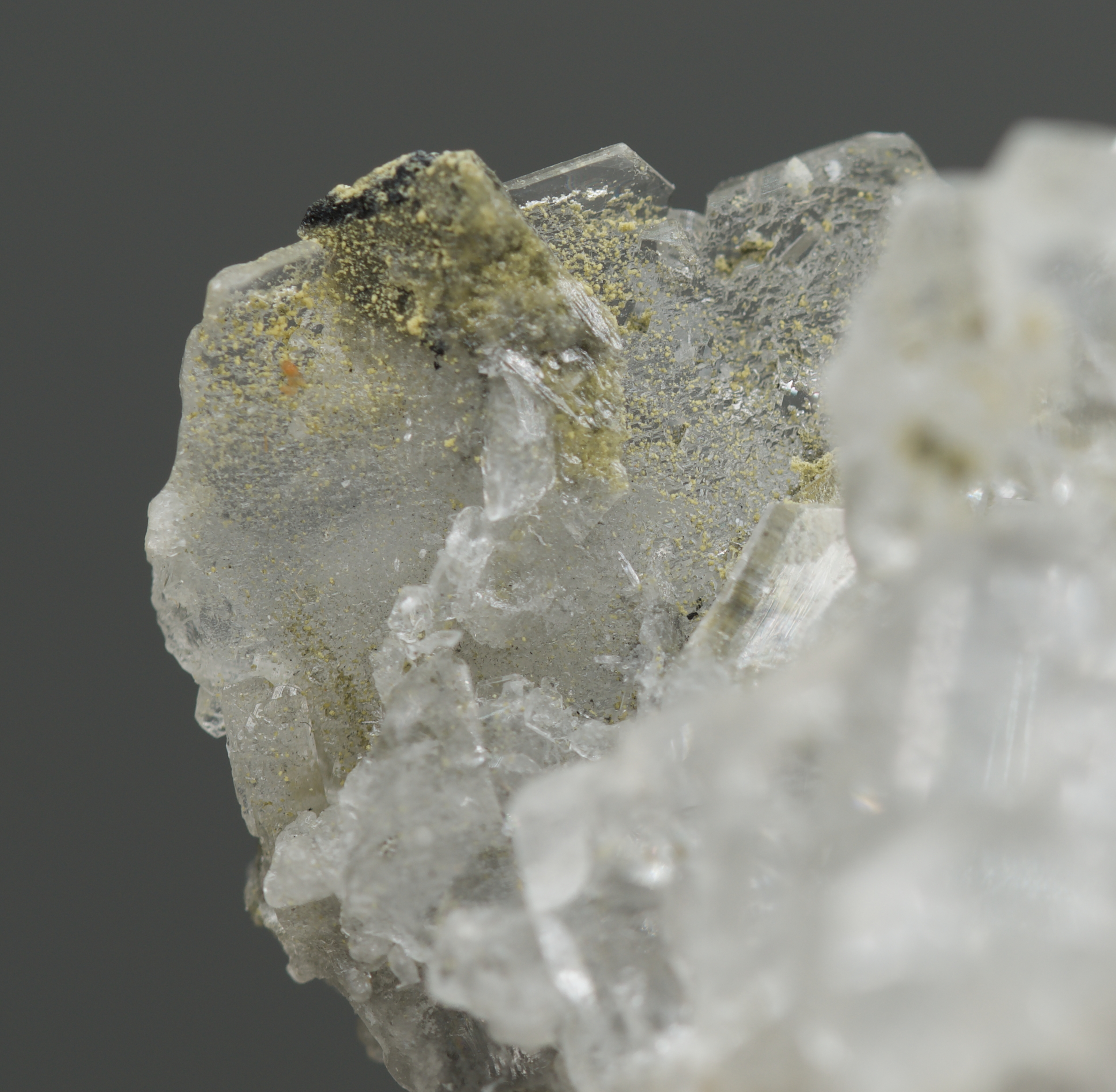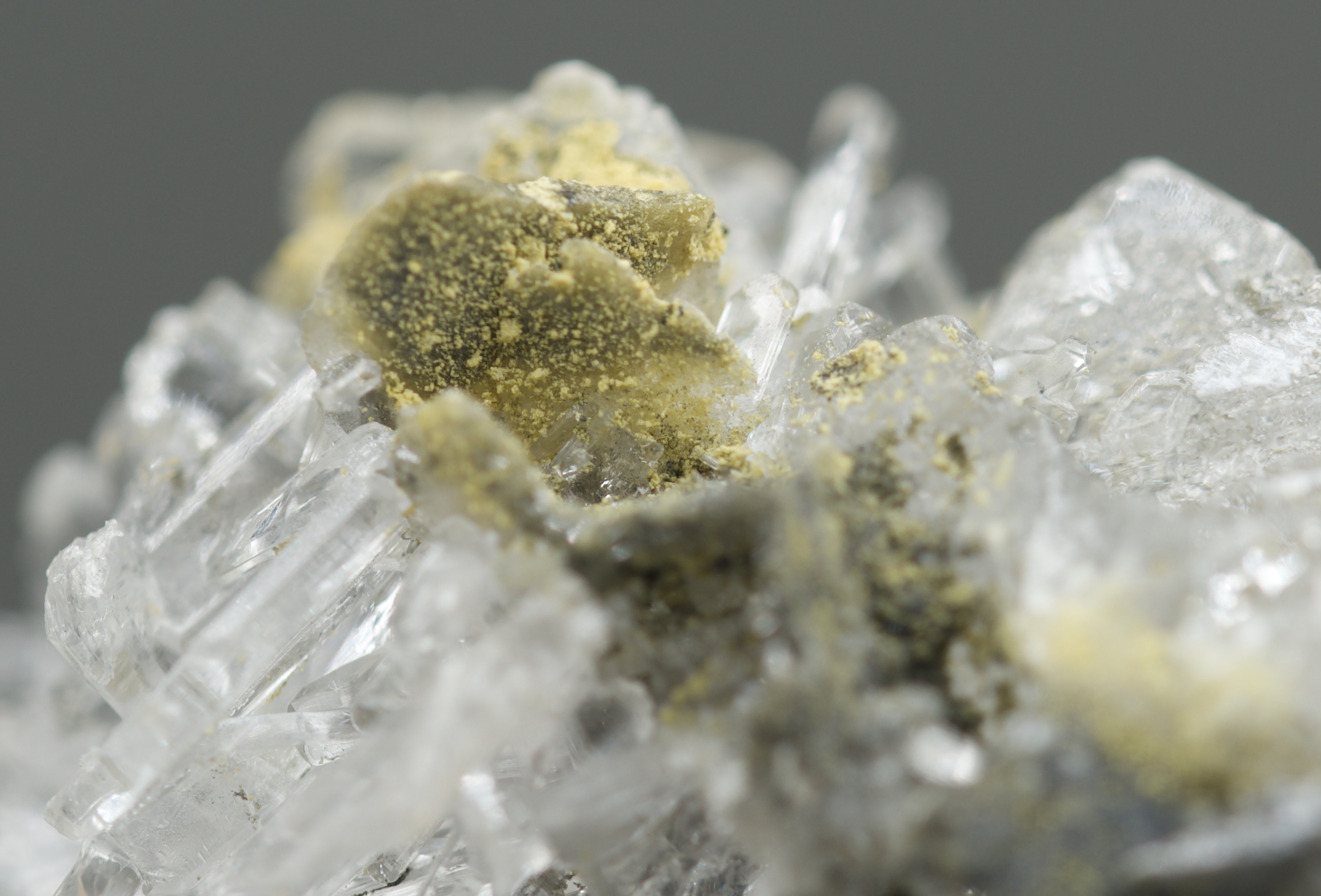 crystals cover mostly incomplete, gray wulfenite crystals.