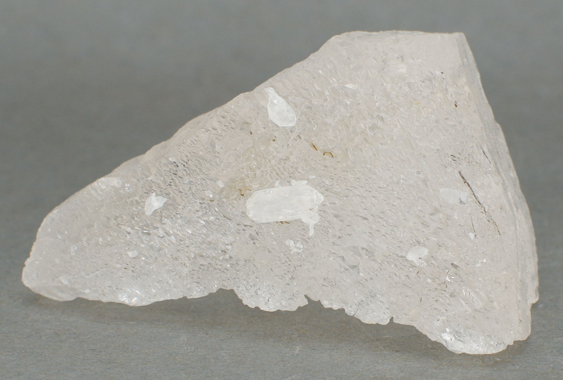 | 21881: Topaz, Tourmaline and Quartz - $40 Skardu District, Gilgit-Baltistan, Pakistan Miniature - 5.7 x 3.1 x 2.2 cm 63 grams Specimen status: Available Send an email with specimen number to order A glassy topaz crystal rendered icy