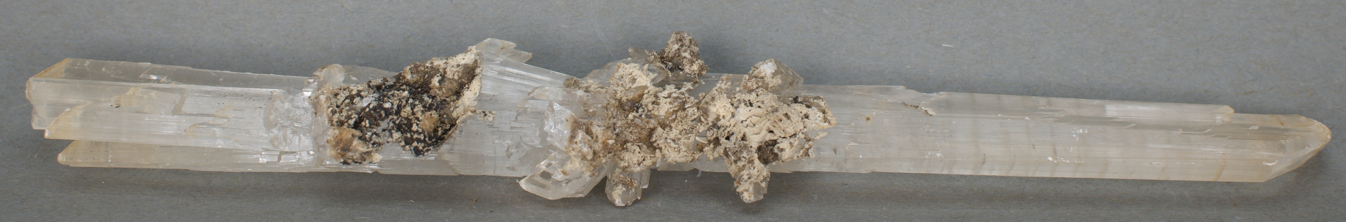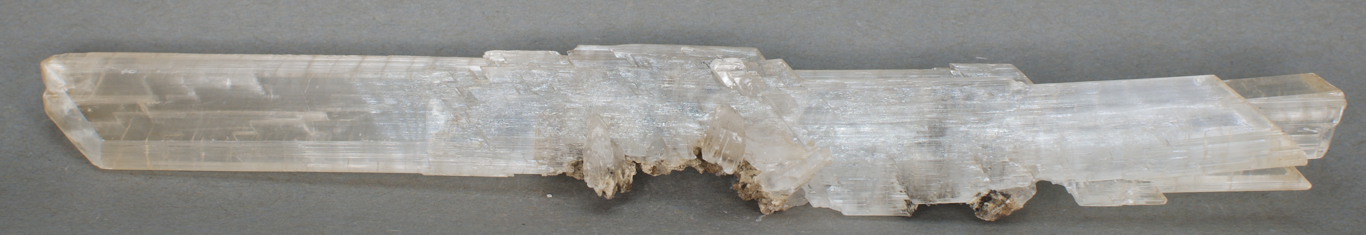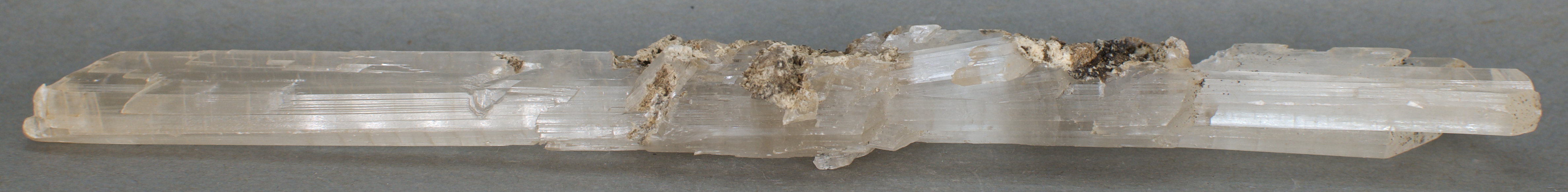 | 28994: Gypsum variety Selenite - $45 Roata Mine, Cavnic, MaramureČ™ County, Romania Large cabinet - 21 x 2.9 x 1.8 cm 83 grams Specimen status: Available Send an email with specimen number to order A highly transparent gypsum (variety