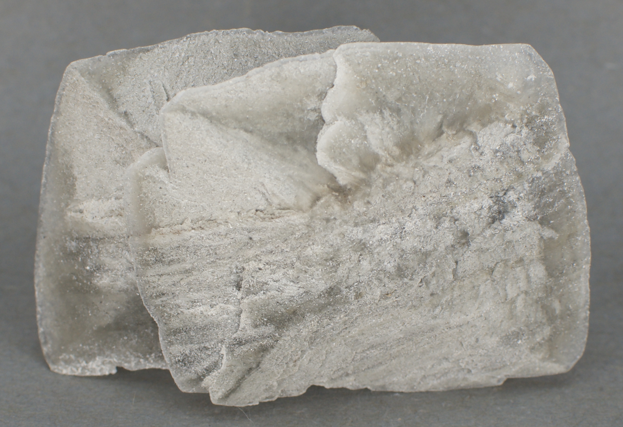 | 35178: Gypsum - $30 Great Salt Lake Minerals, North Arm, Great Salt Lake, Box Elder County, Utah Small cabinet - 7.3 x 5.3 x 1.9 cm 61 grams Specimen status: Available Send an email with specimen number to order A cluster of two tabular, translucent
