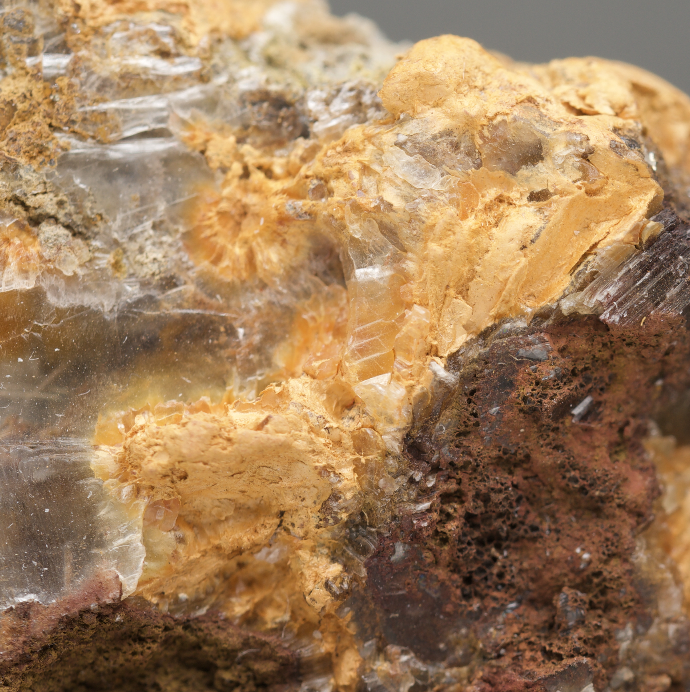 Selenite - $100 Ojuela Mine, MapimÃ, Mapimà Municipality, Durango, Mexico Miniature - 4.5 x 3.6 x 1.9 cm 23 grams Specimen status: Available Send an email with specimen number to order Abundant, orange ludlockite needles
